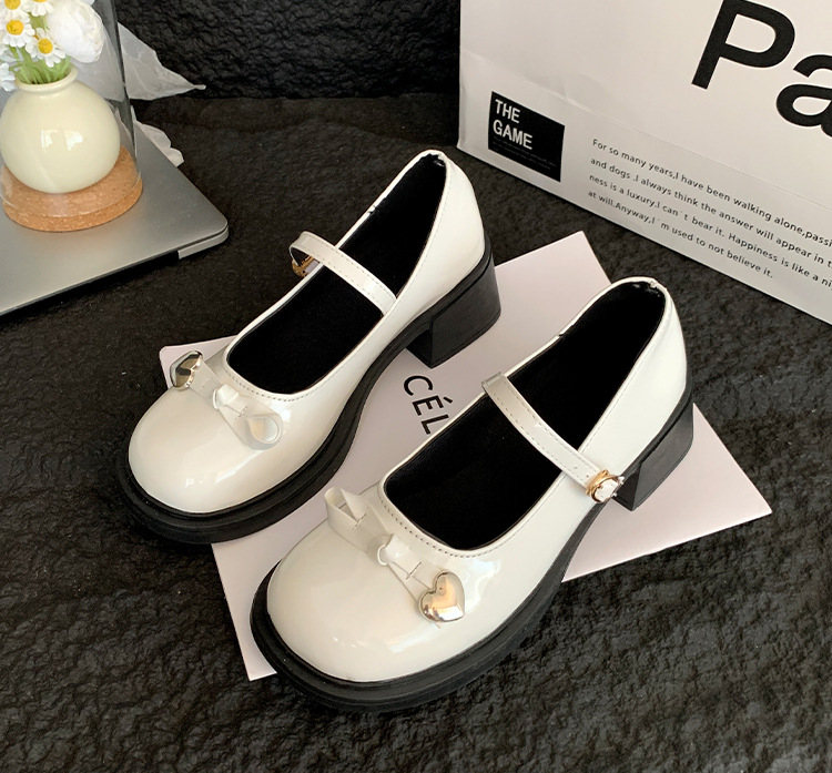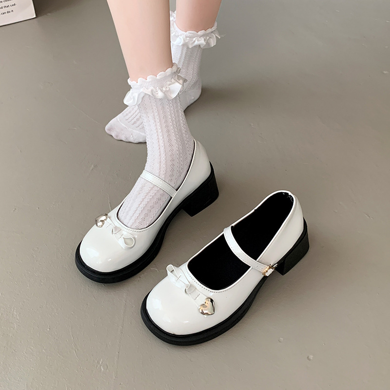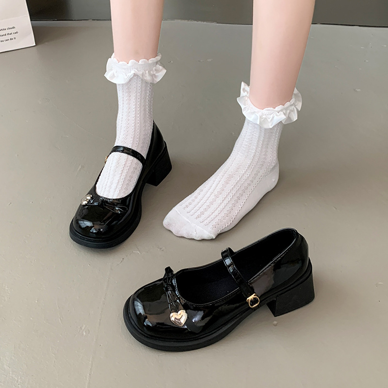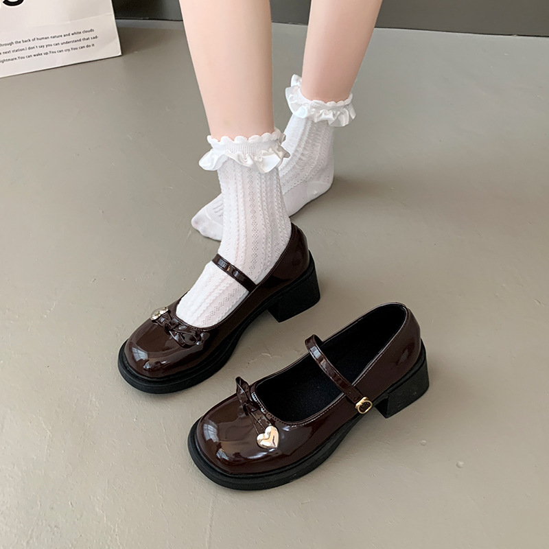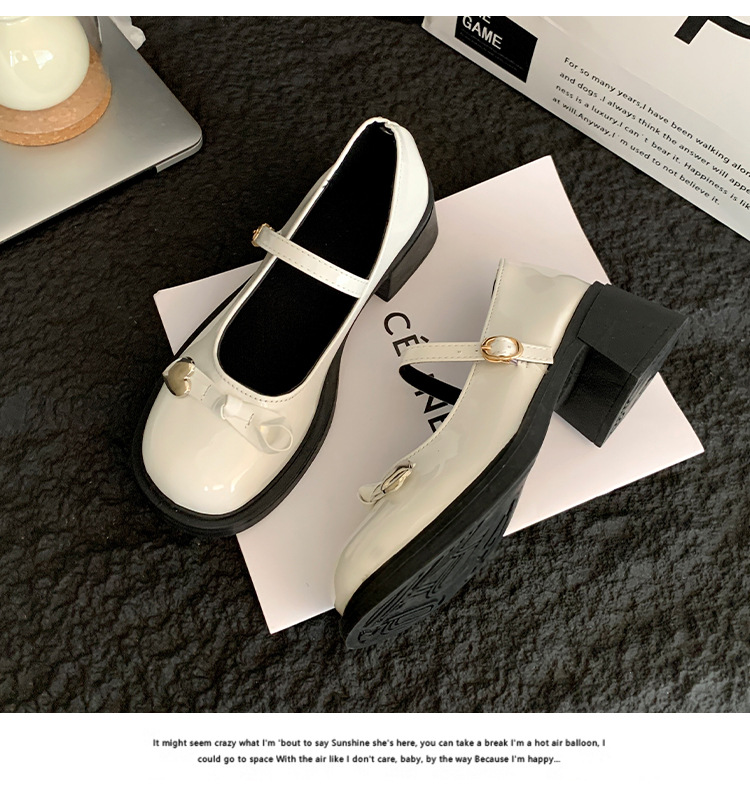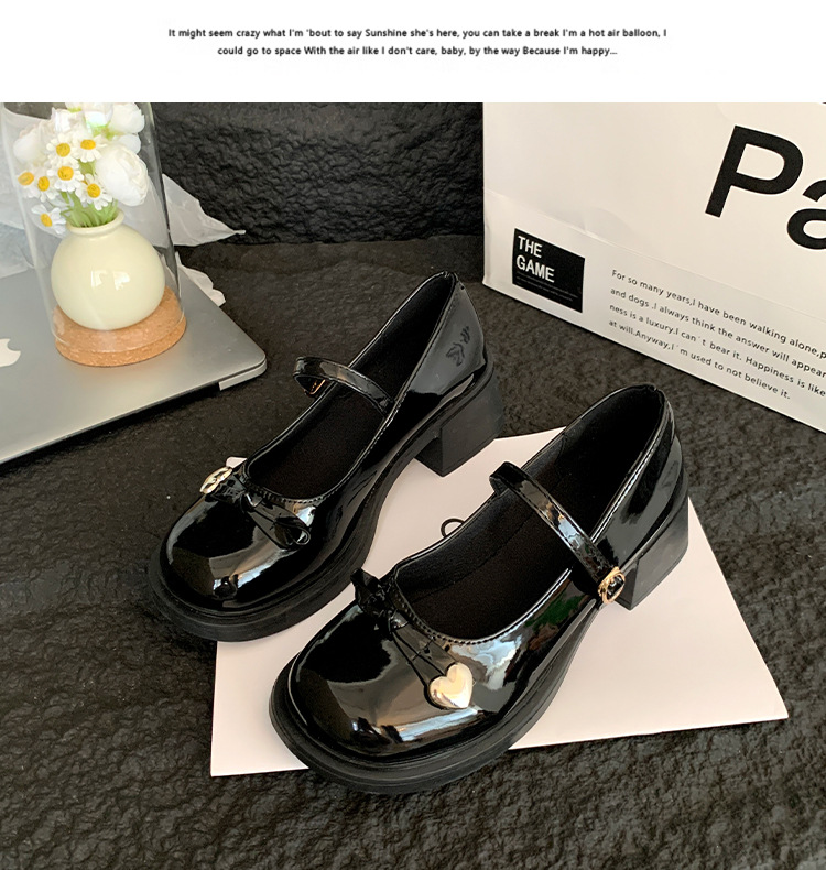 빈티지 두꺼운 굽 메리 제인 신발 여성의 2024 새로운 활 일본 JK 싱글 레이어 신발 버클 블랙 가죽 신발