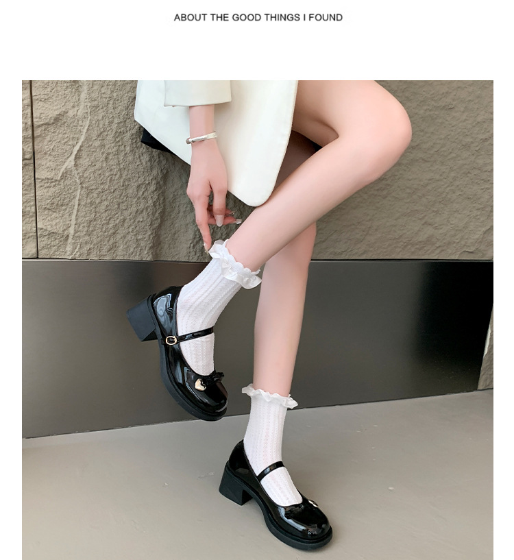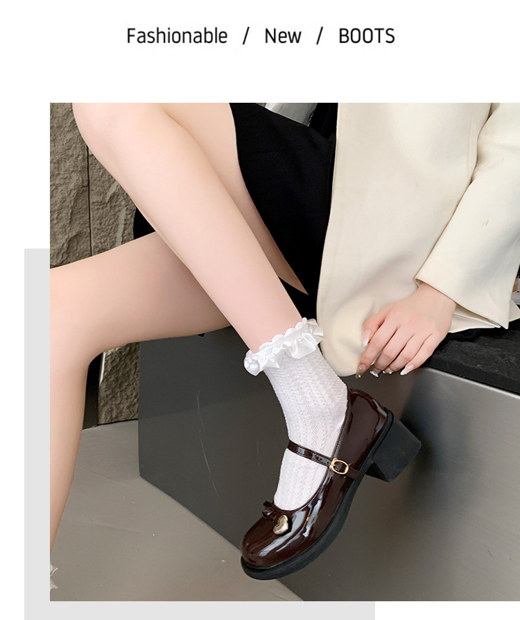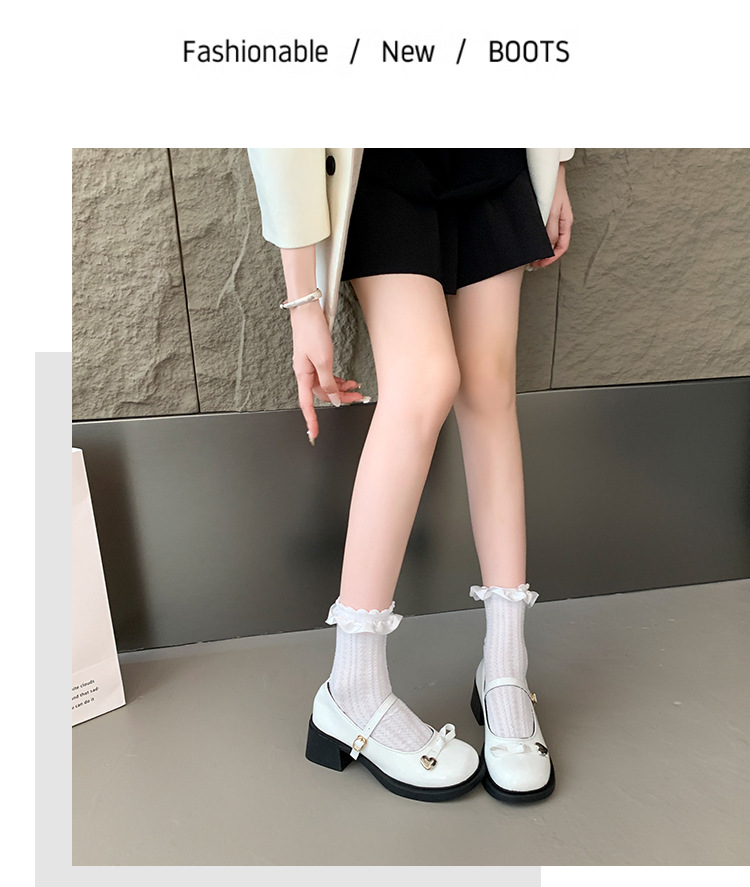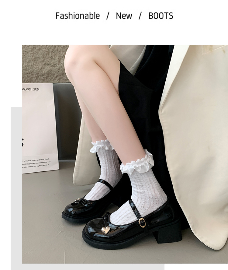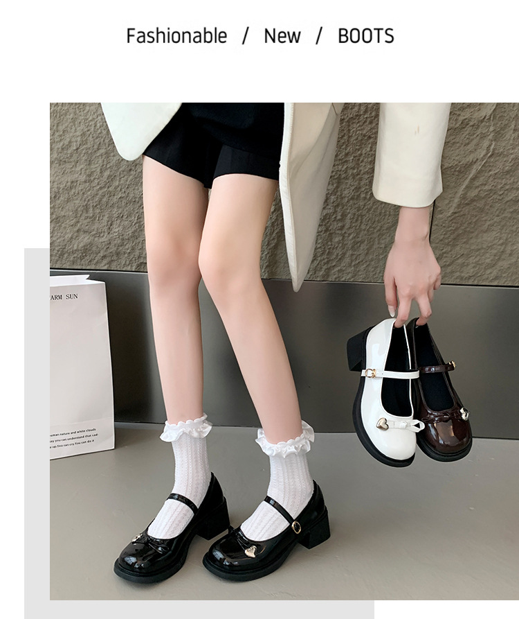 빈티지 두꺼운 굽 메리 제인 신발 여성의 2024 새로운 활 일본 JK 싱글 레이어 신발 버클 블랙 가죽 신발