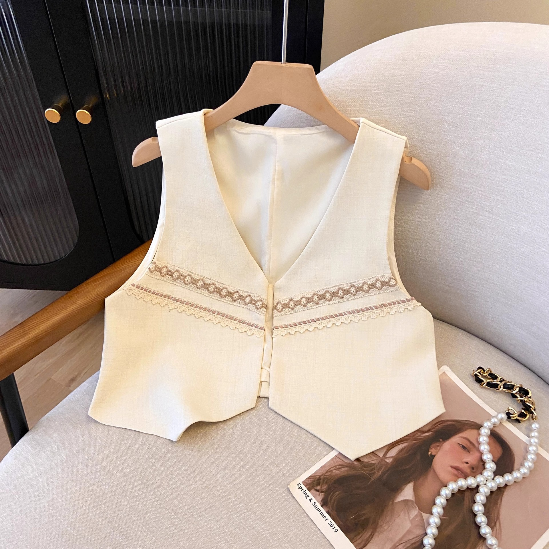 국경 간 윈난 민족 스타일 자수 조끼 재킷 여성 휴가 착용 오버랩 V 넥 조끼 탑