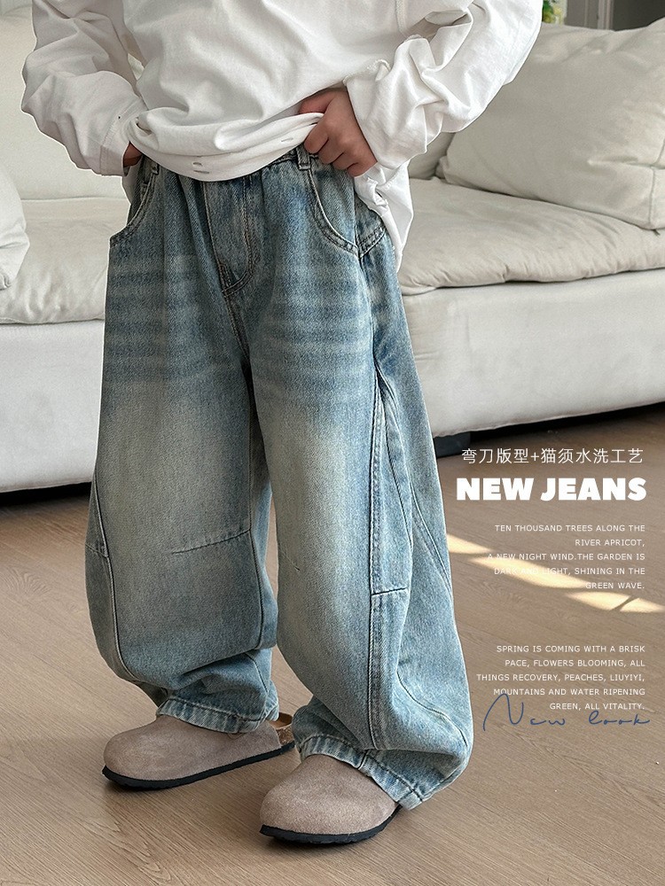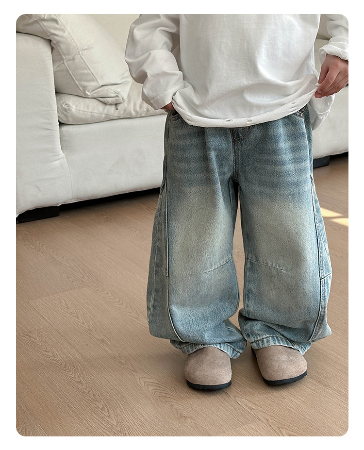 아동복 남아용 기모 데님 팬츠 2025 겨울 신상 아동 캐주얼 두꺼운 긴바지 큰아이 가을 겨울 바지 트렌디스토어 가기