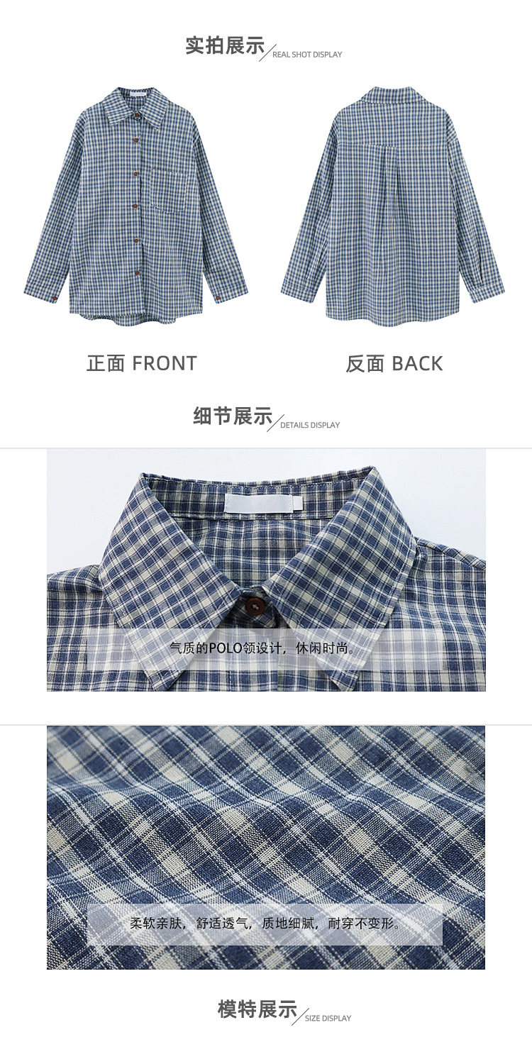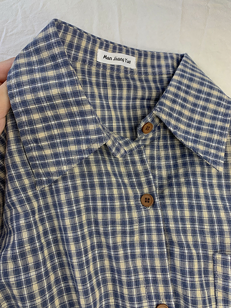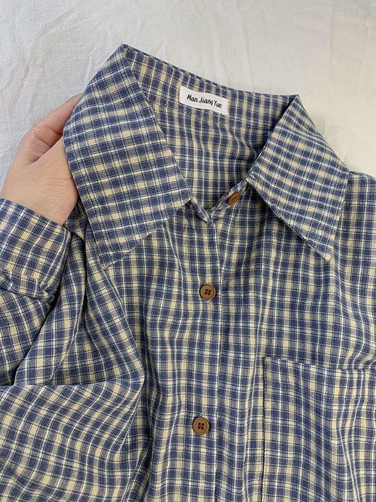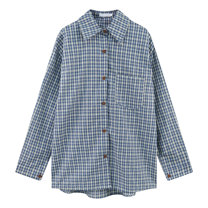 가을과 겨울 여성의 쌓인 셔츠 틈새 디자인 탑 봄 캐주얼 자켓을 가진 파란 격자 무늬 셔츠스토어 가기