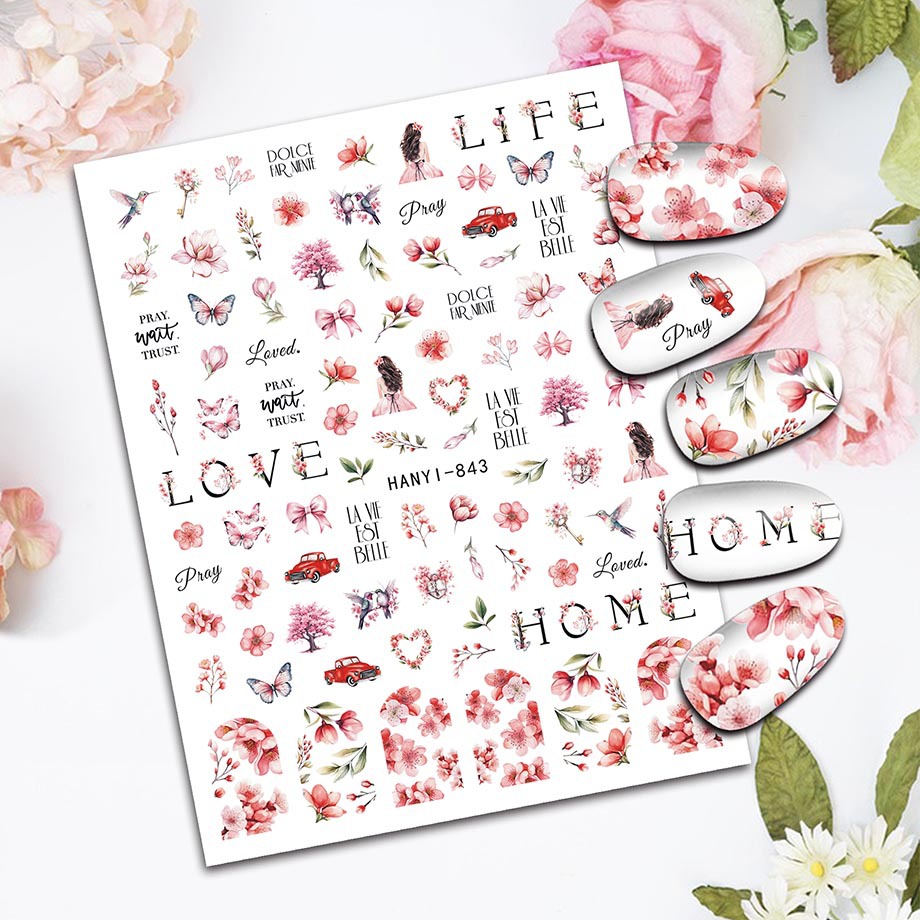INS 국경 전자 상거래 네일 스티커 봄 복숭아 꽃 벚꽃 작은 신선한 네일 데칼 840-856스토어 가기