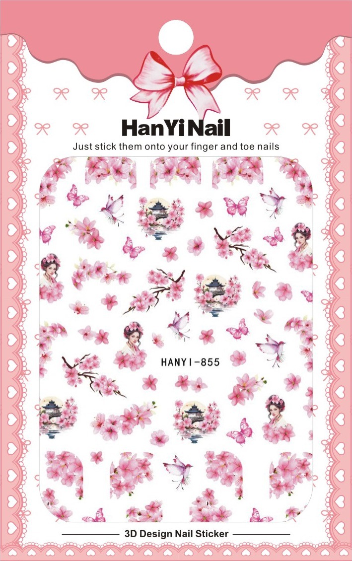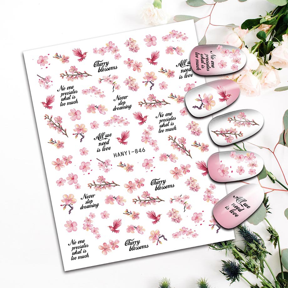 INS 국경 전자 상거래 네일 스티커 봄 복숭아 꽃 벚꽃 작은 신선한 네일 데칼 840-856