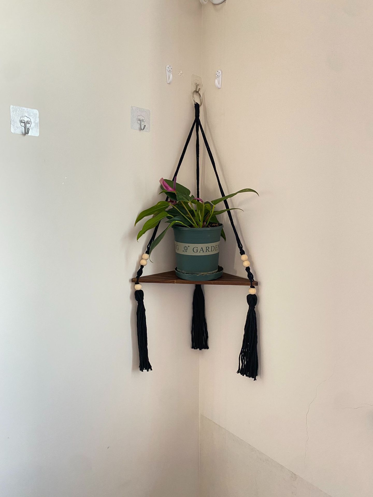 아마존의 새로운 코너 수납 선반 보헤미안 코튼 로프 손으로 짠 삼각대 홈 화분 수납