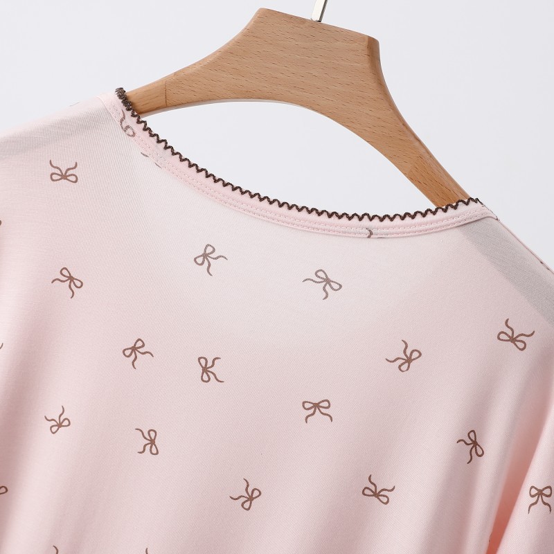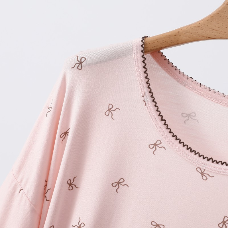 YUKES 레이스 나이트 드레스 느슨한 플러스 사이즈 반팔 원피스 신선한 인쇄 활 캐주얼 홈 원피스