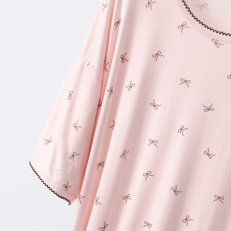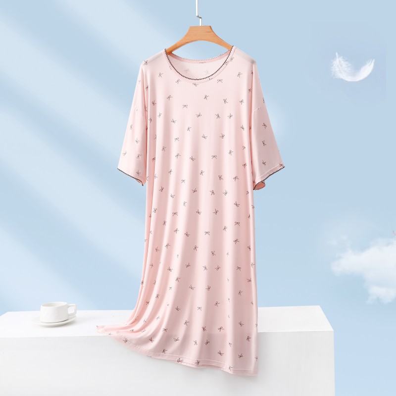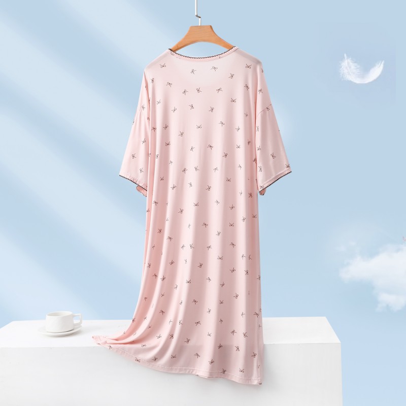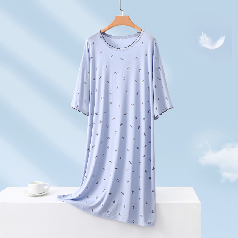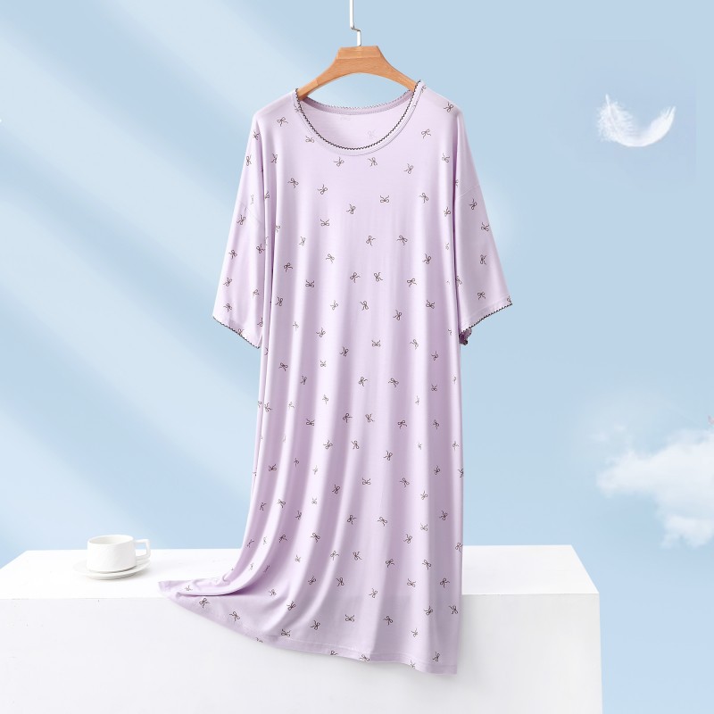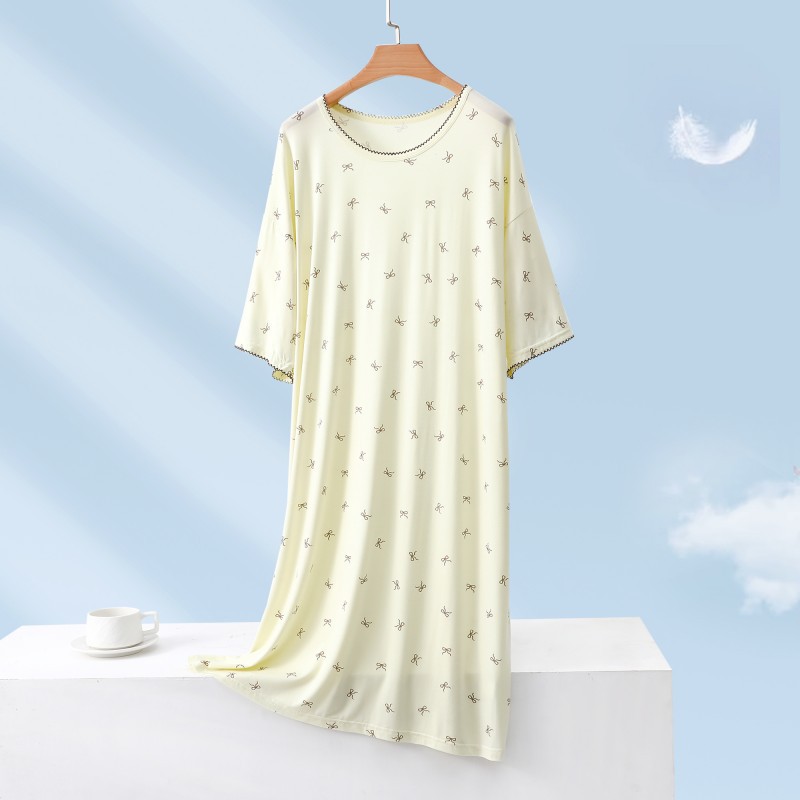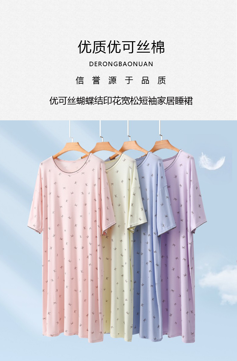 YUKES 레이스 나이트 드레스 느슨한 플러스 사이즈 반팔 원피스 신선한 인쇄 활 캐주얼 홈 원피스스토어 가기