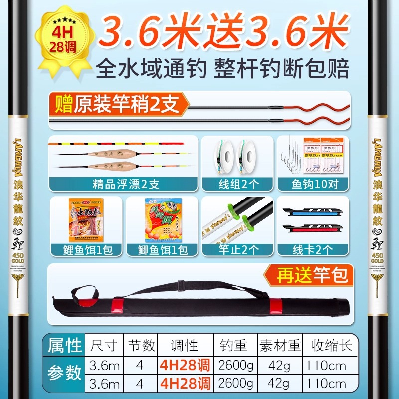 • [ 10kg 레저 야생 낚시 초급 에디션] 3.6m 무료 3.6m + 풀 낚시 선물 패키지