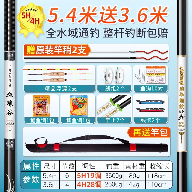 • [ 50kg 풀워터 유니버설 피싱 독점 에디션] 5.4m 무료 3.6m + 풀 낚시 선물 팩