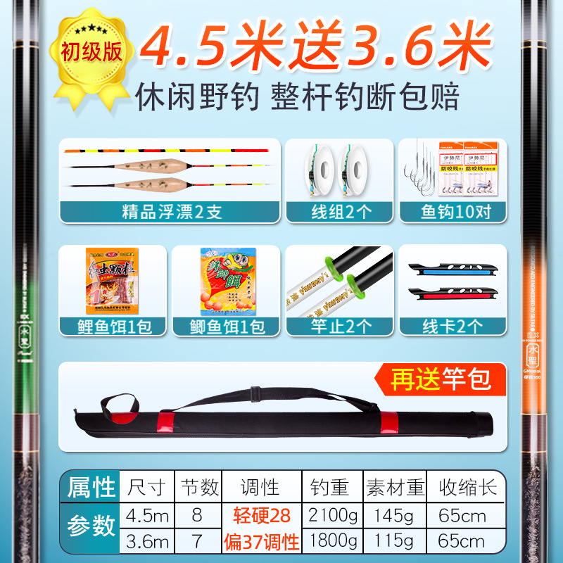 • [ 10kg 레저 야생 낚시 초급 에디션] 4.5m 무료 3.6m + 풀 낚시 선물 팩
