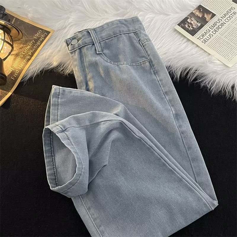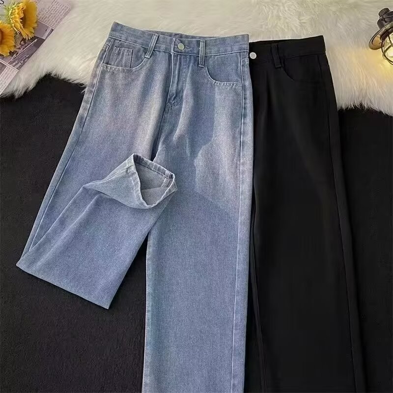 남성용 국경 간 대외 무역 인기 청바지, 미국 하이 스트리트 트렌디, 멋쟁이, 고급, 캐주얼, 루즈, 스트레이트, Shopee 핫 세일스토어 가기