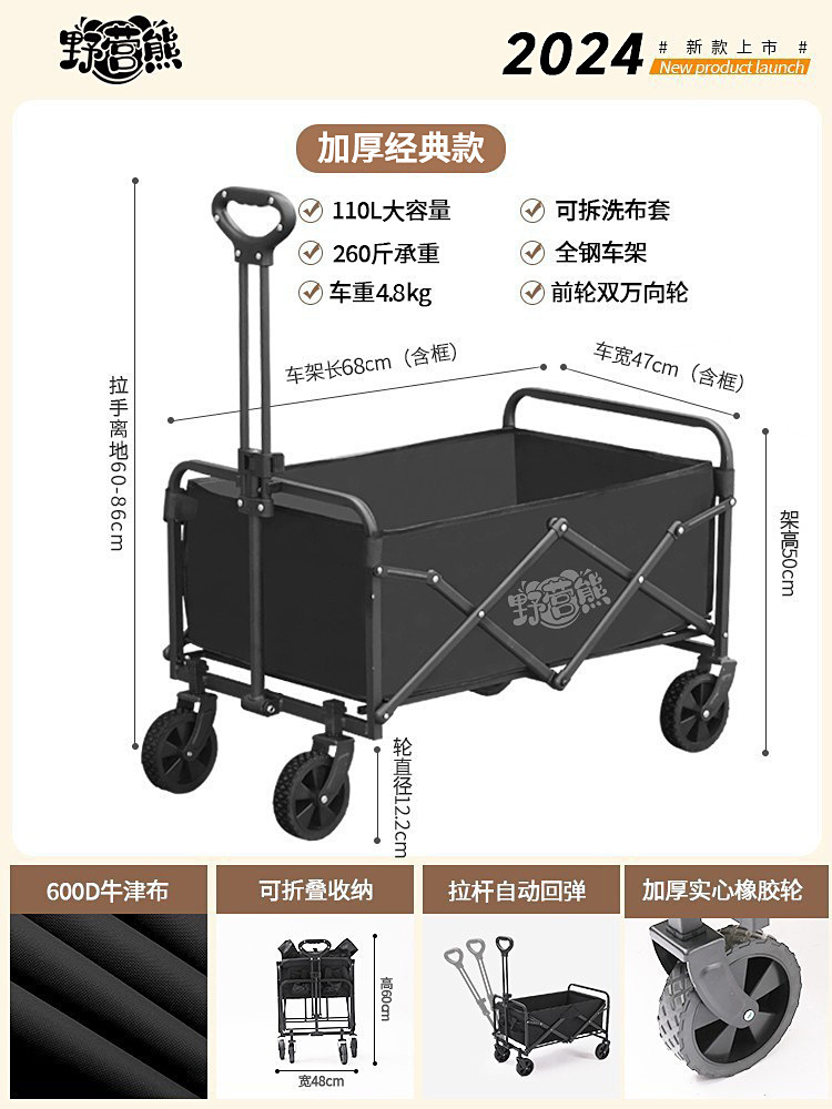 야외 캠핑카 어린이 거짓말 접이식 대형 피크닉 캠프 자동차 여행 스톨 익스프레스 핸드 트롤리