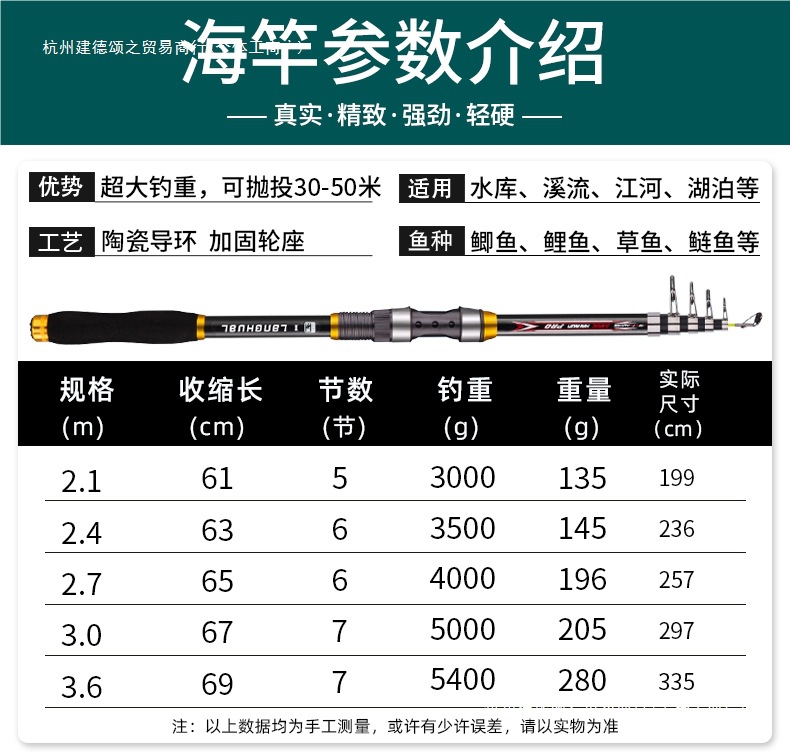 • 전체 예비 세트 + (핸드 로드 6.3m 무료 5.4m ) + 바다 로드 3.6m + 대형 우산