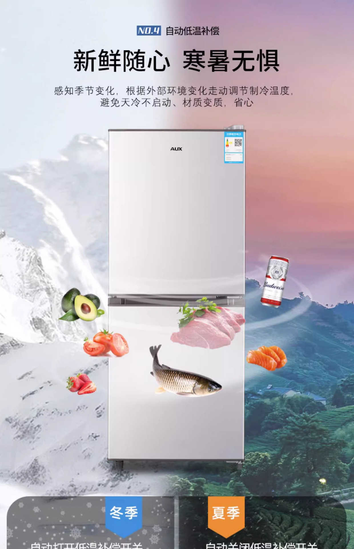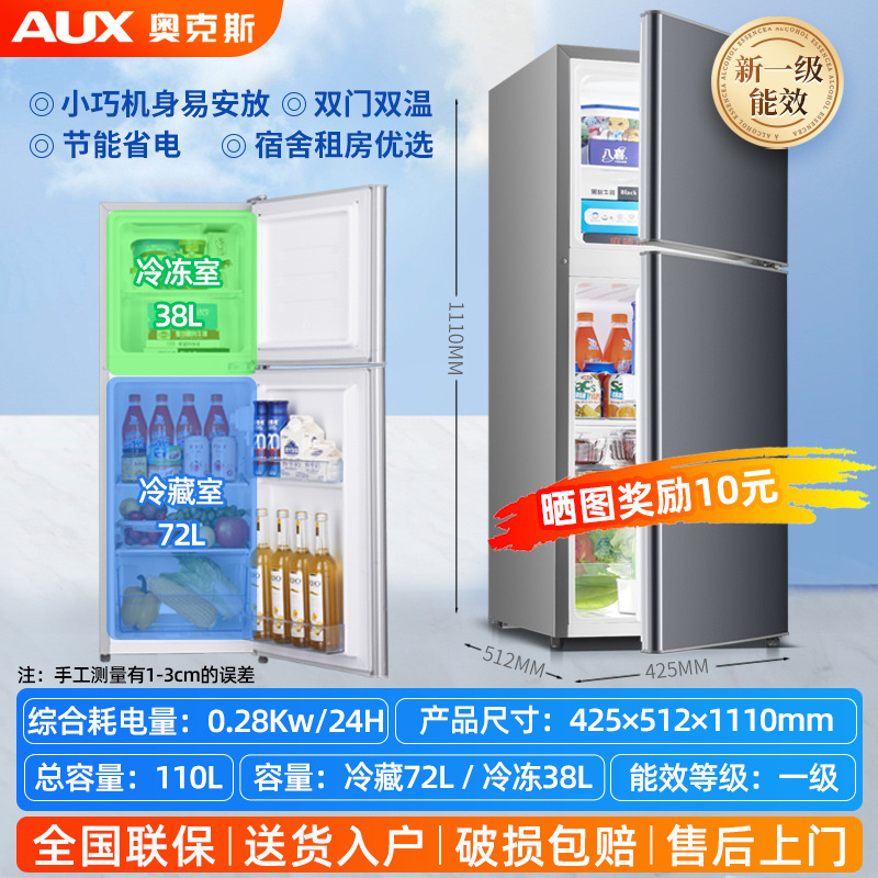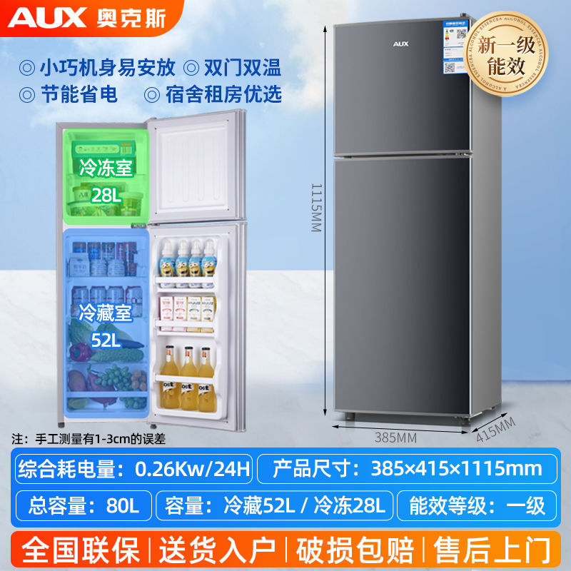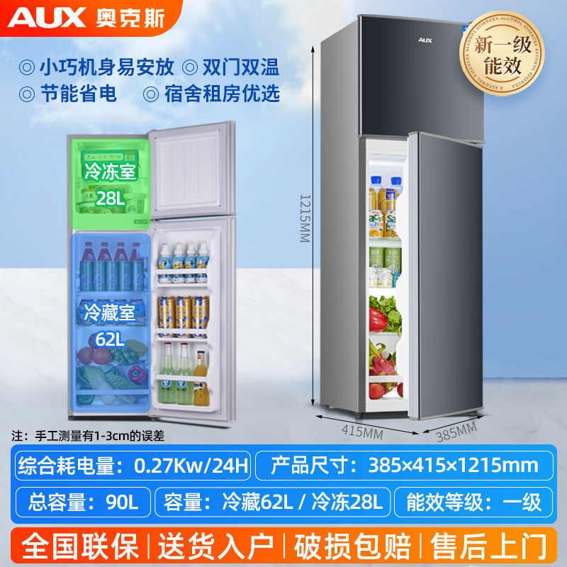 오크스 소형 냉장고 가정용 소형 기숙사 임대실 냉동냉장 겸용 양문형 냉장고 저소음 이중 온도 조절
