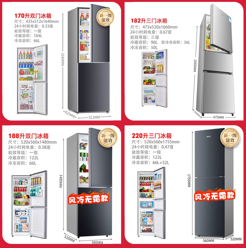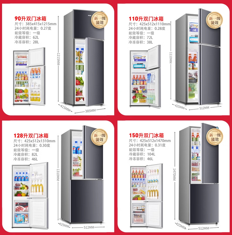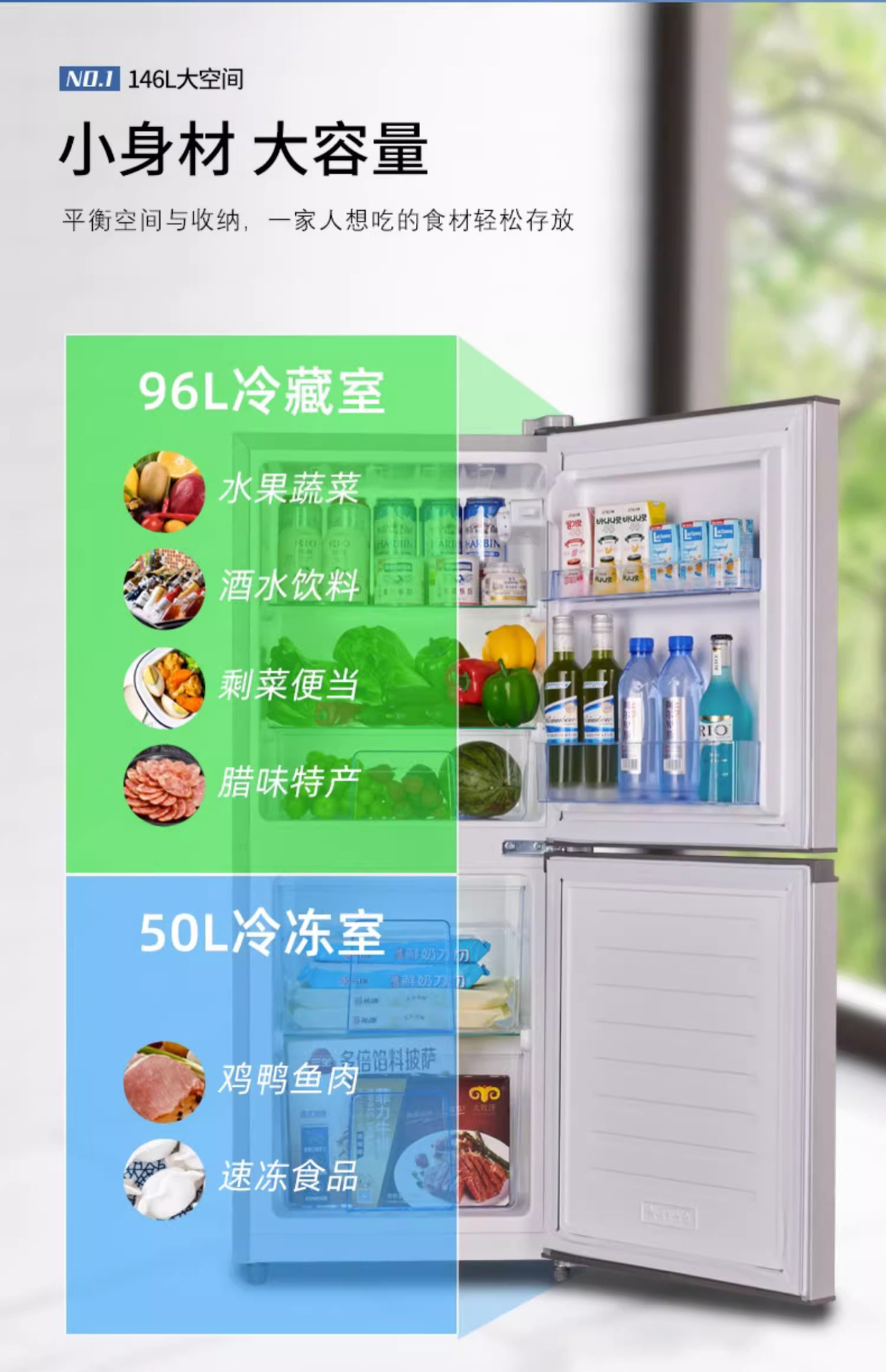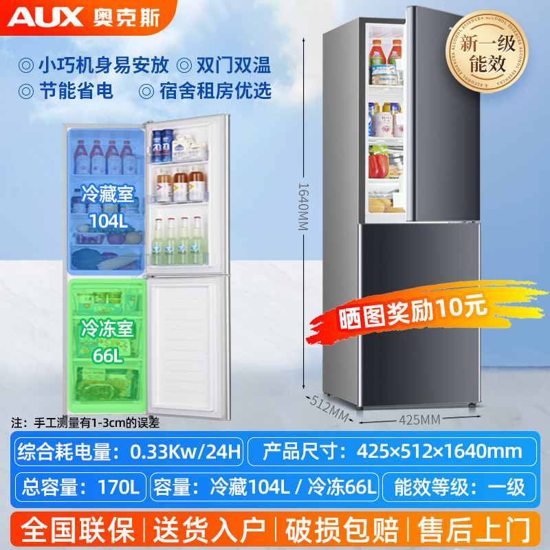 오크스 소형 냉장고 가정용 소형 기숙사 임대실 냉동냉장 겸용 양문형 냉장고 저소음 이중 온도 조절