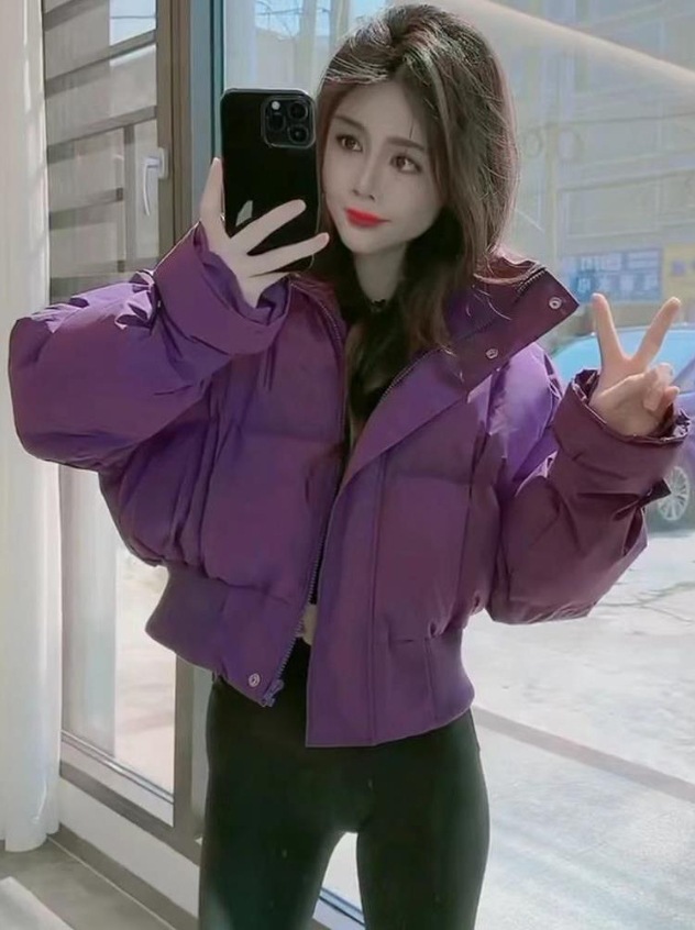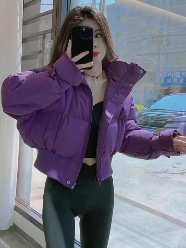 올해 인기있는면 패딩 재킷 여성의 겨울 2024 새로운 짧은 보라색면 패딩 재킷 하이 센스 슈퍼 잘 생긴 코트스토어 가기