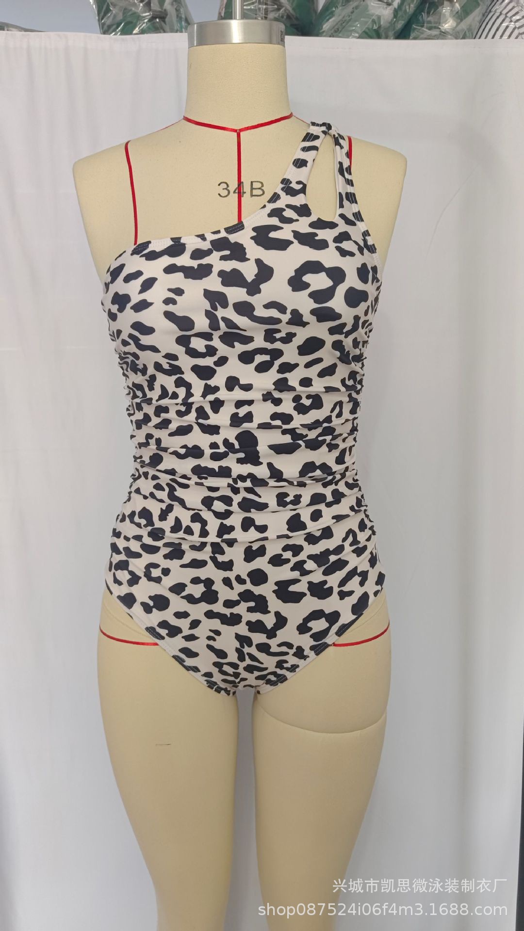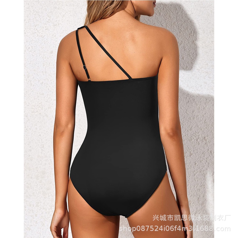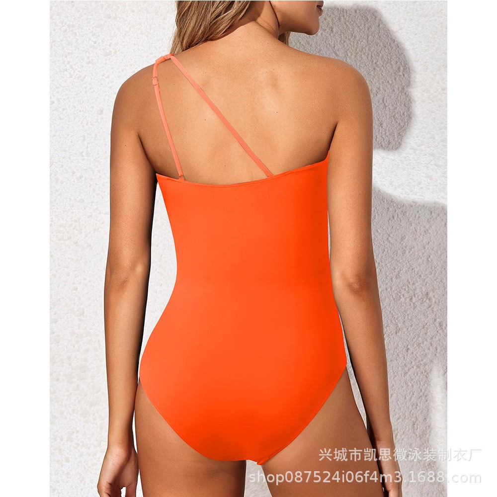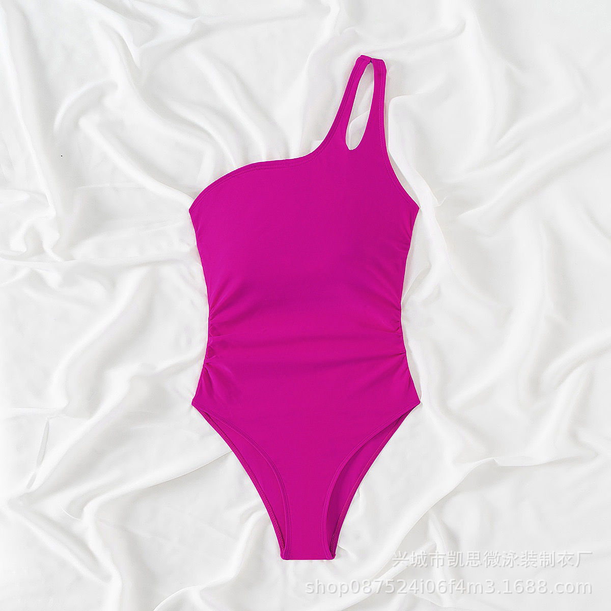 새로운 비키니 유럽과 미국의 한 어깨 수영복 여성 아마존 슬림 핏 슬리밍 주름 빈 원피스 수영복