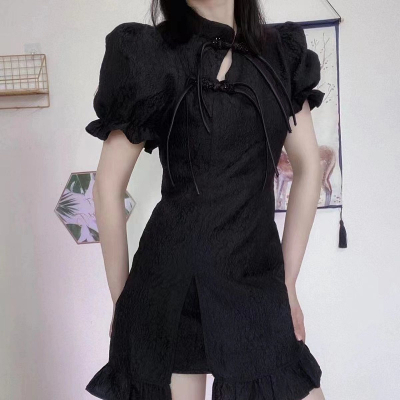 개선 된 청삼 원피스 여성 작은 디자인 센스 고급 프랑스 첫사랑 기질 허리 달콤한 핫 A 라인 스커트