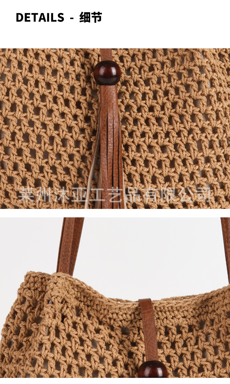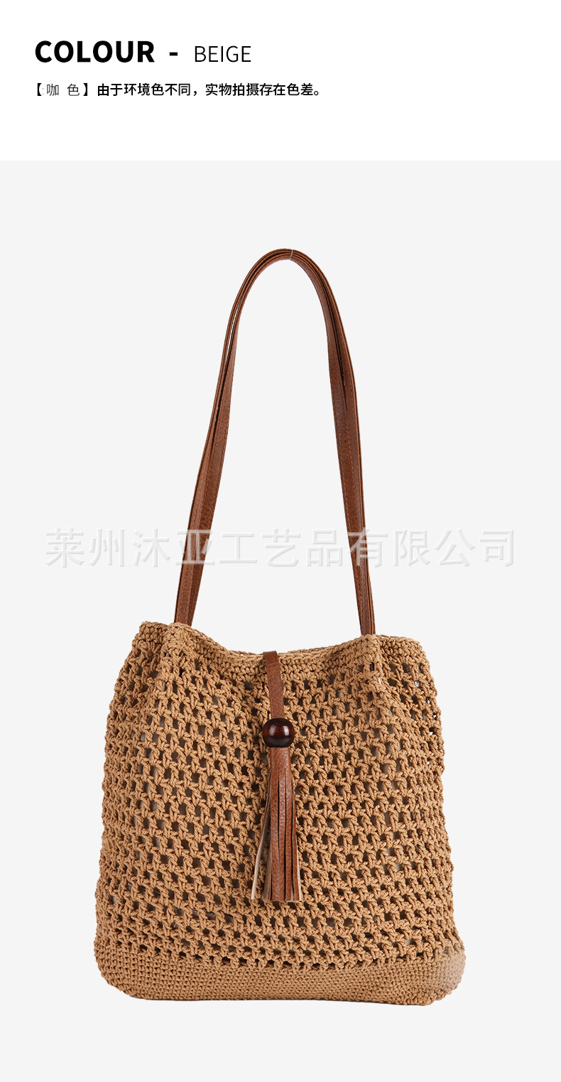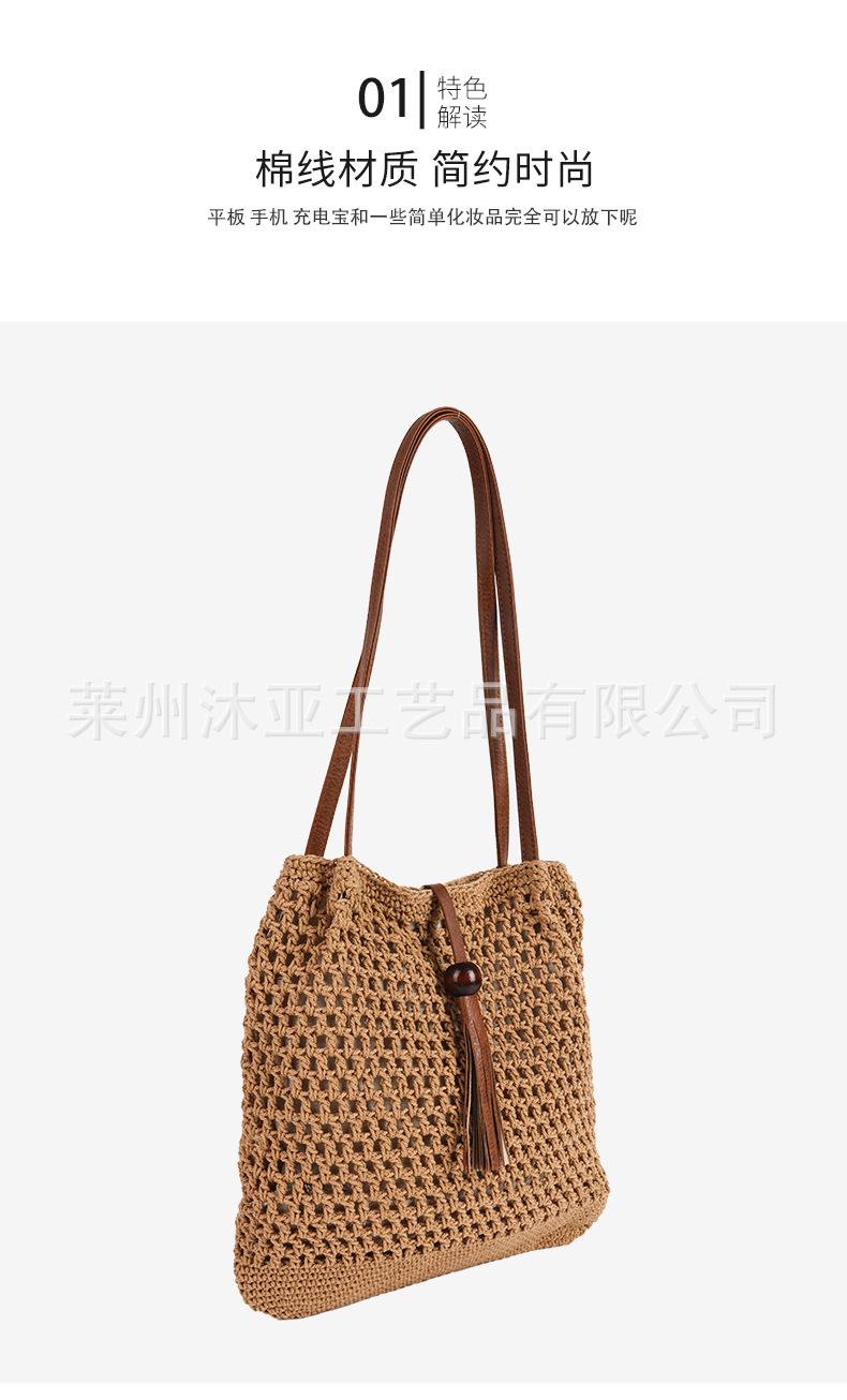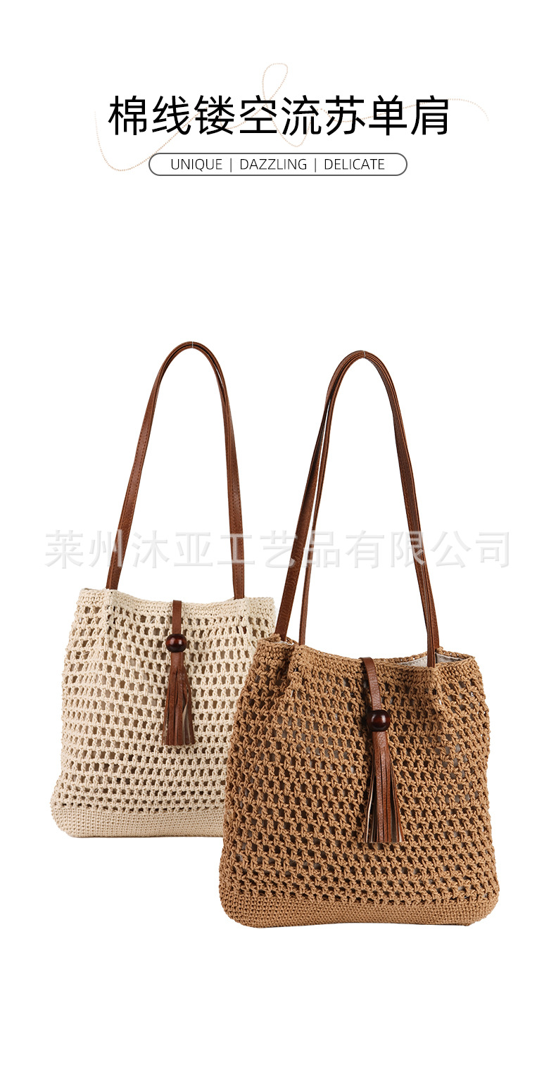 민족 스타일 나무 구슬 술 목화 짠 가방 새로운 도착 중공 어깨 가방 휴일 해변 가방 캐주얼 여성 가방스토어 가기