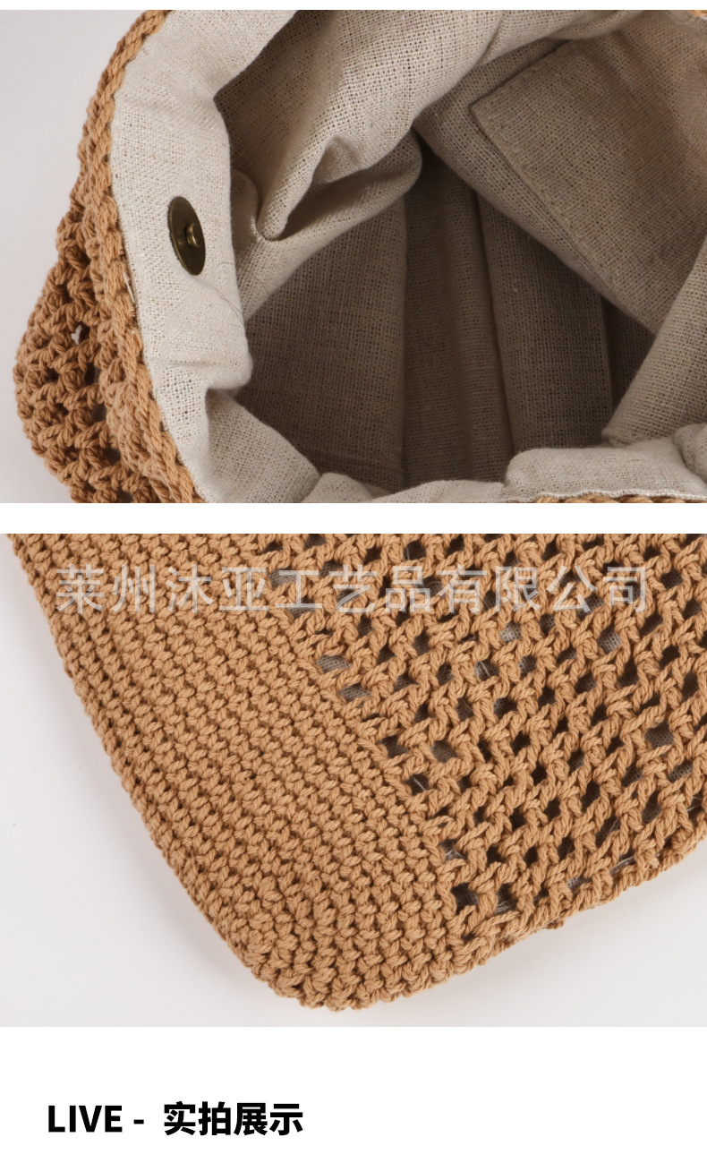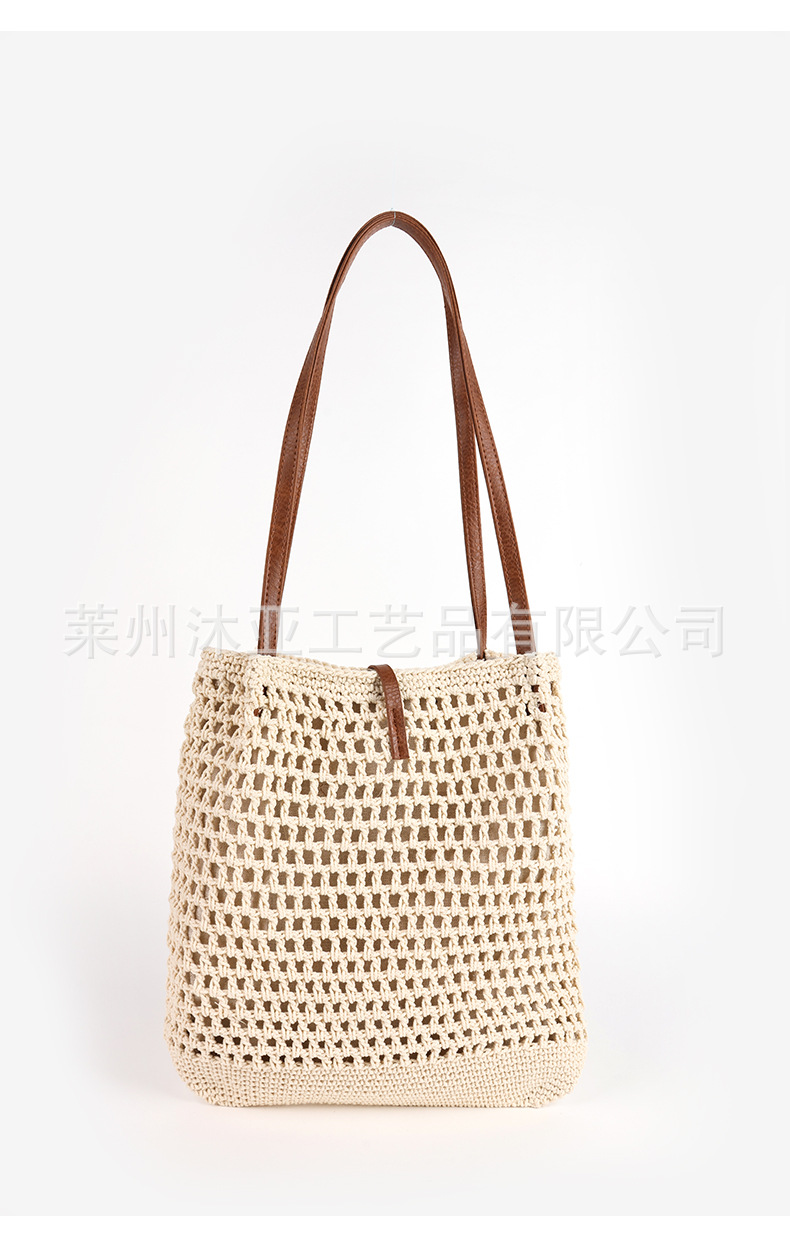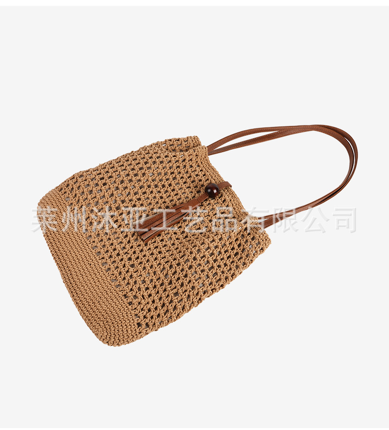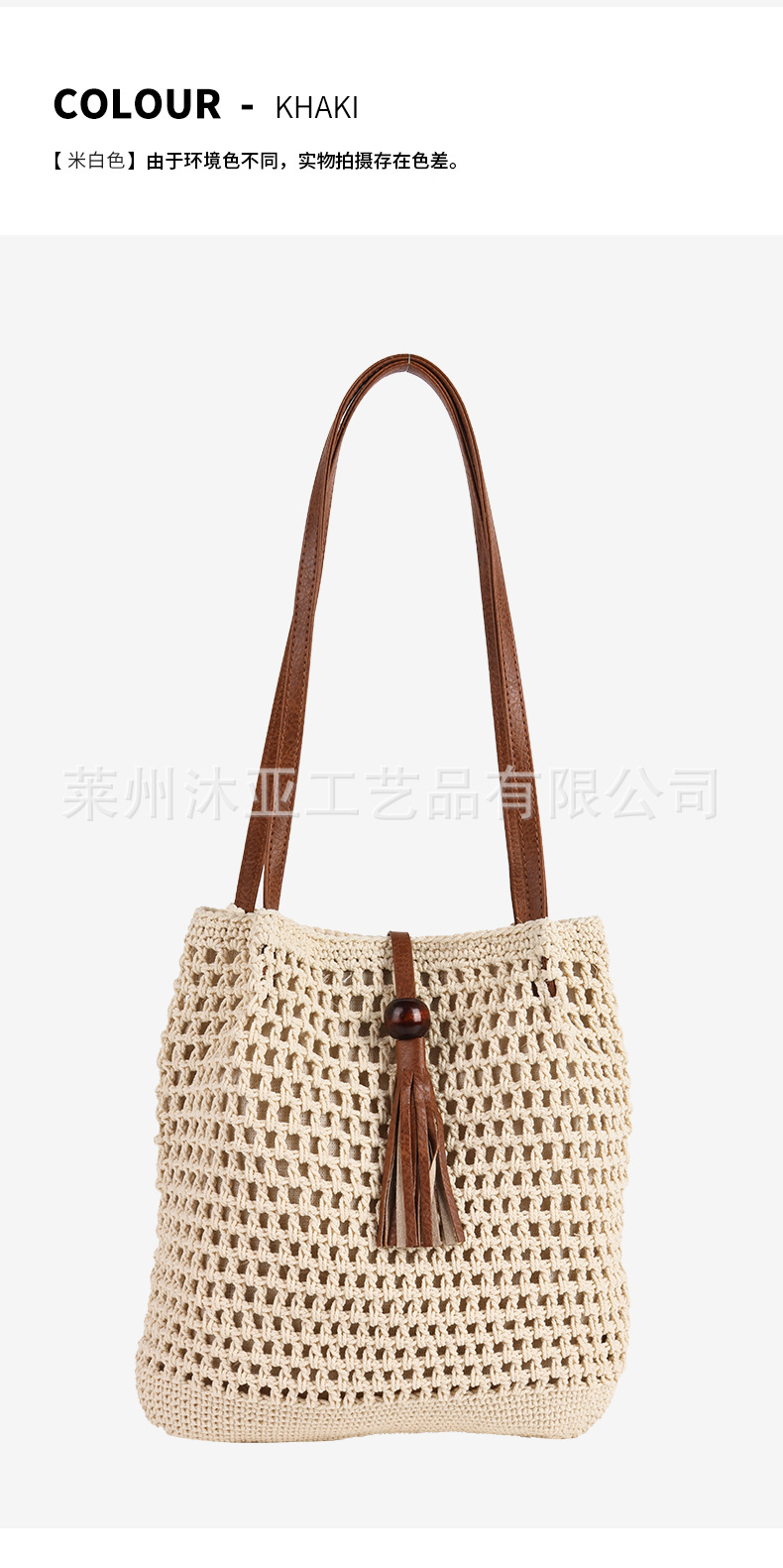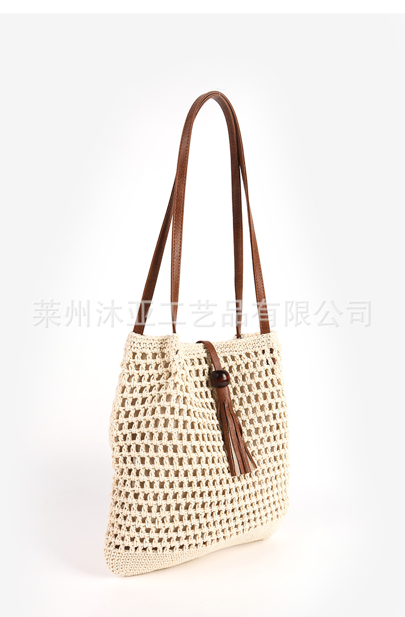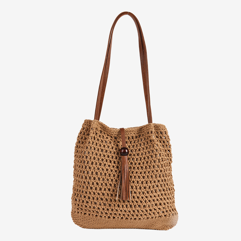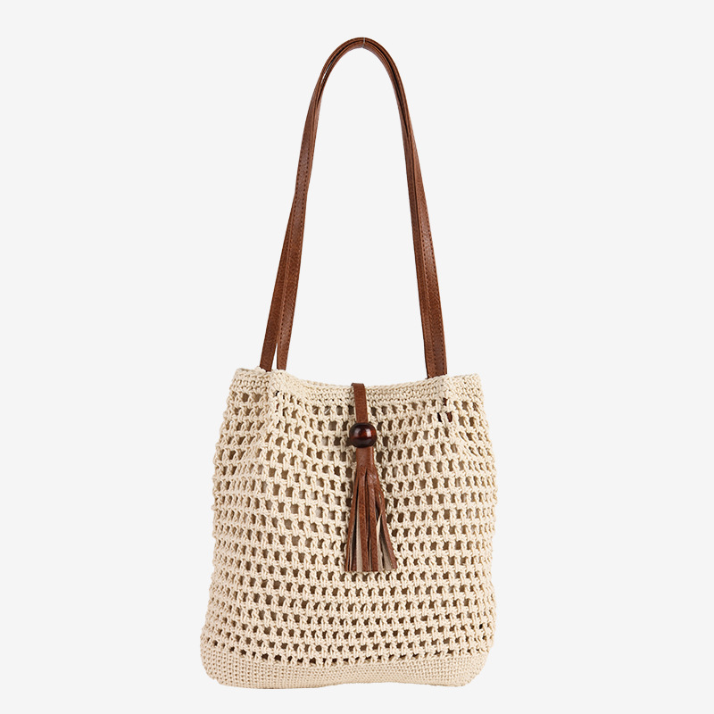 민족 스타일 나무 구슬 술 목화 짠 가방 새로운 도착 중공 어깨 가방 휴일 해변 가방 캐주얼 여성 가방