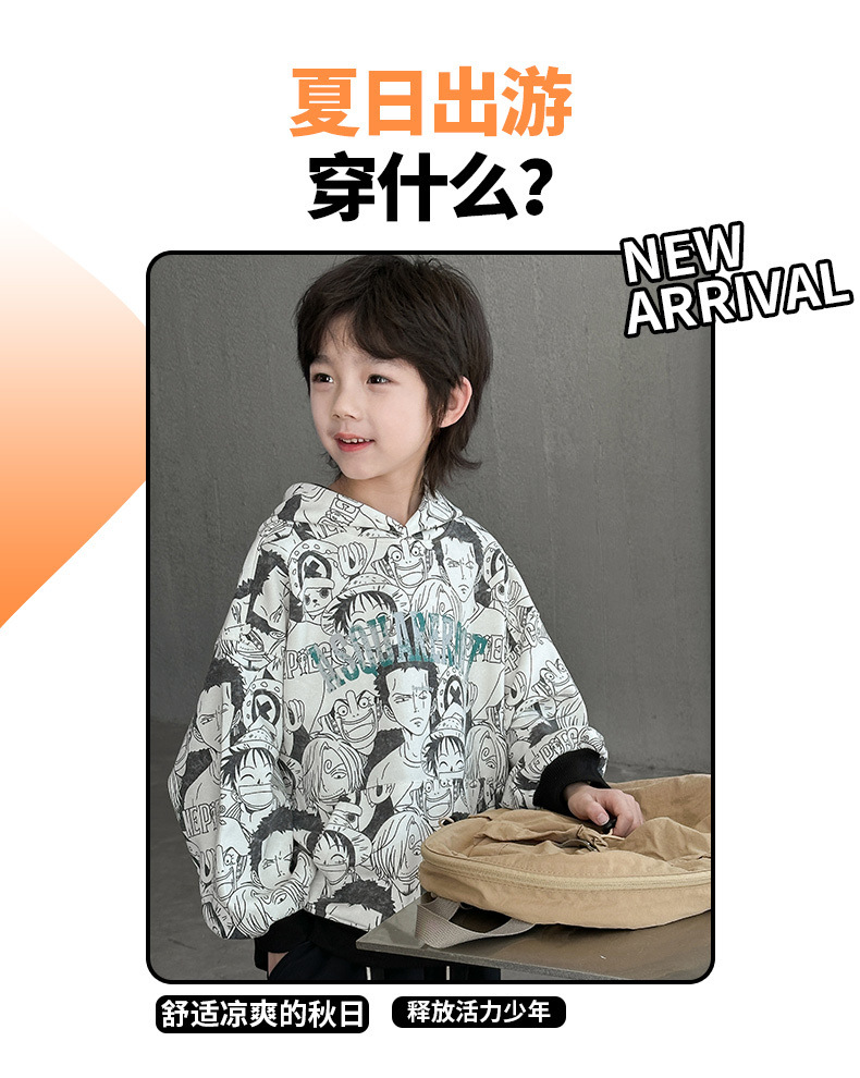 소년 애니메이션 풀 프린트 후드 스웨트 셔츠 봄과 가을 2024 새로운 중형 및 대형 아동복 유행 풀오버 소년 잘 생긴 탑