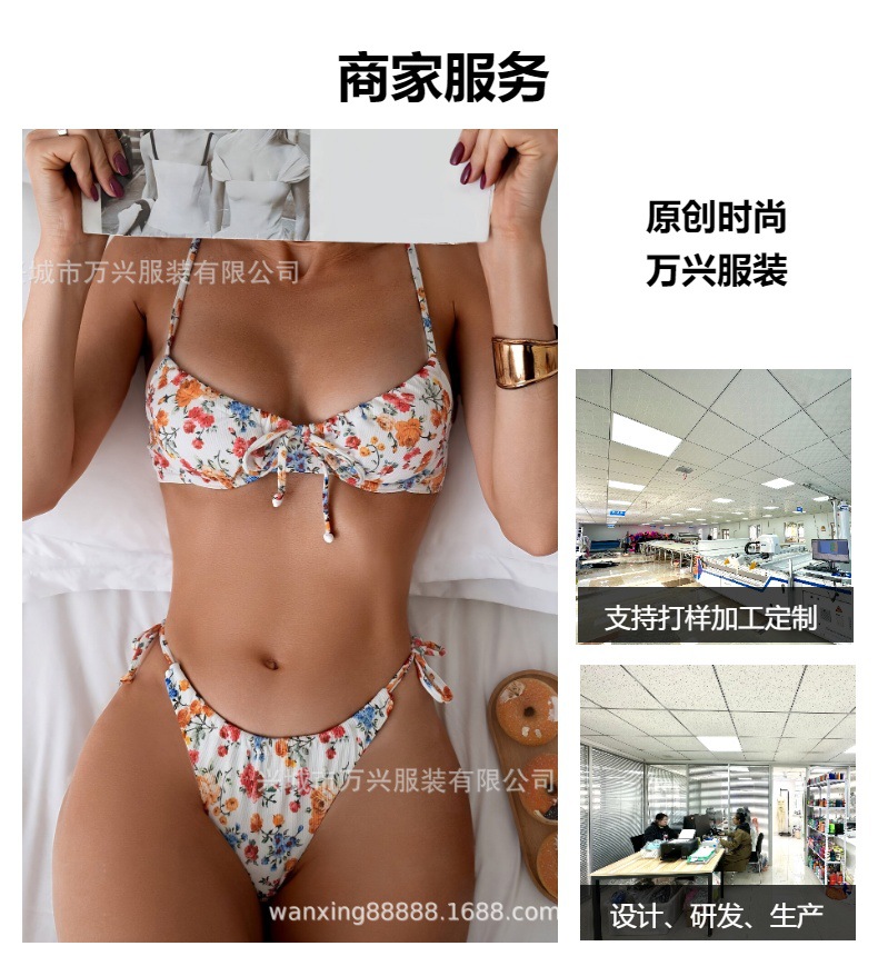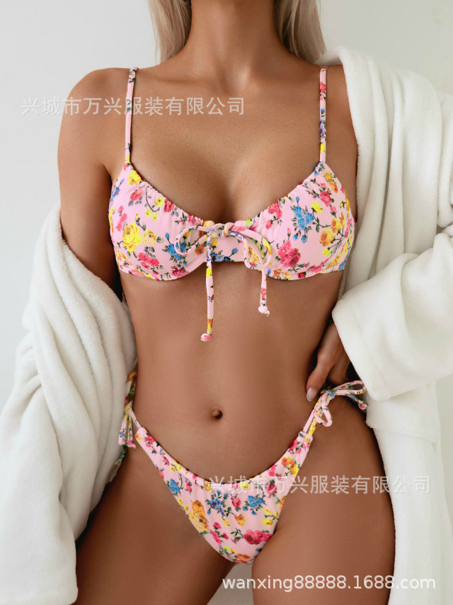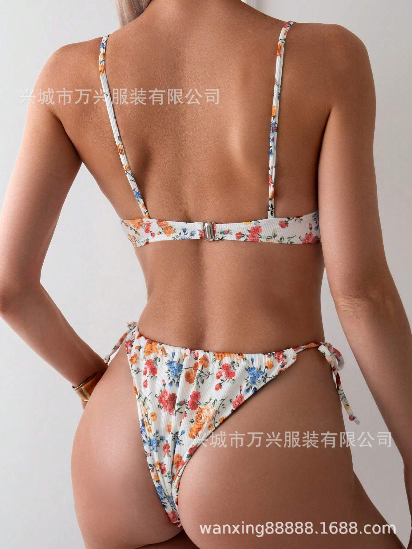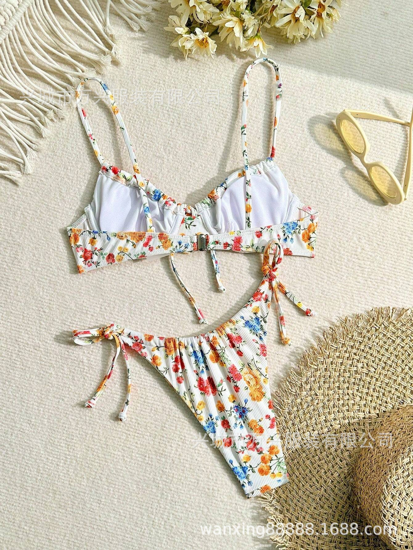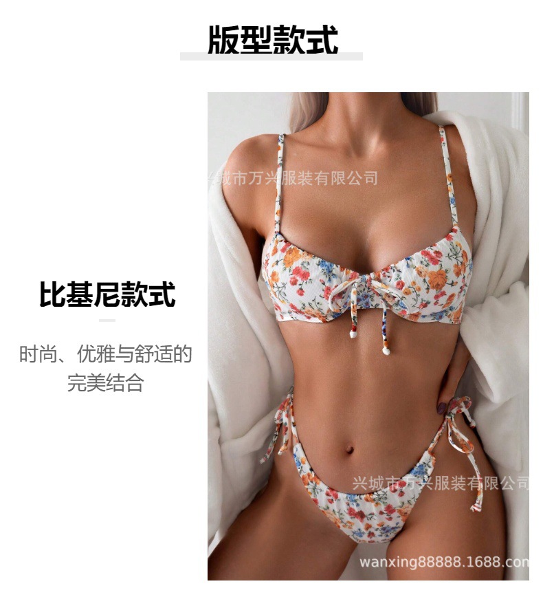 2025 새로운 비키니 꽃무늬 스플릿 BS 투피스 수영복 여성 섹시 작은 가슴 푸시업 섹시 대외 무역 수영복스토어 가기