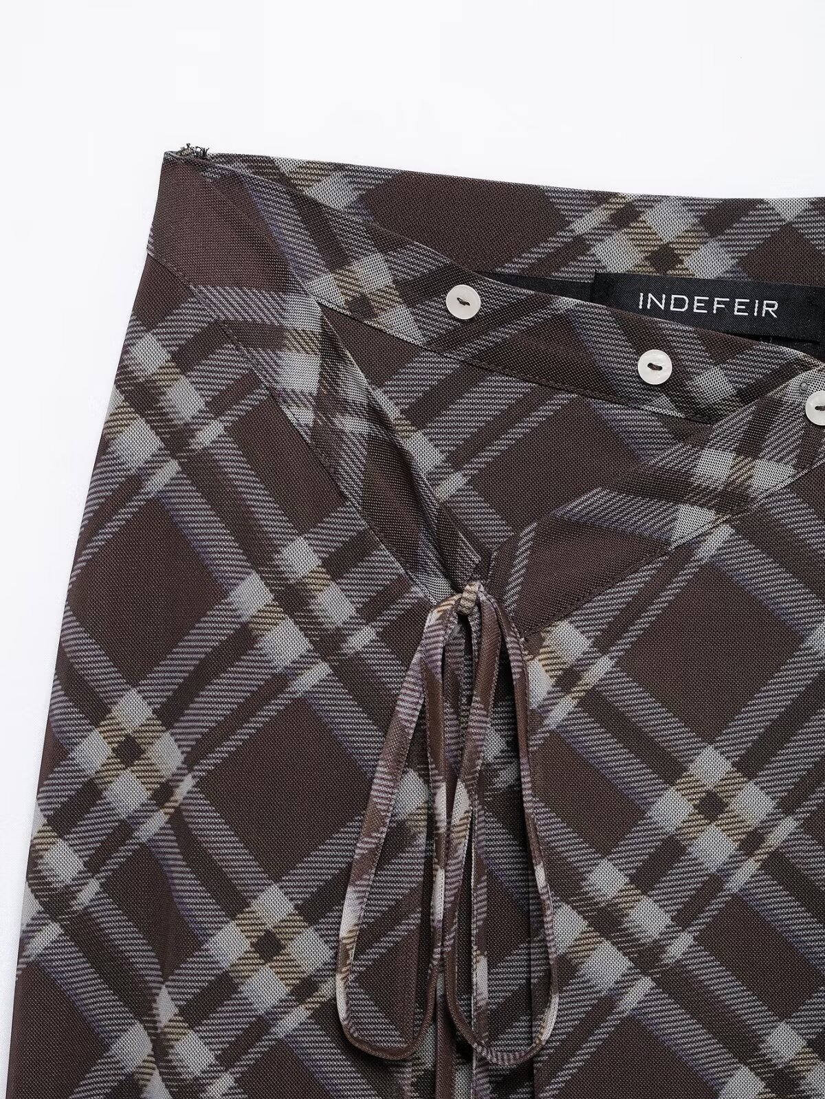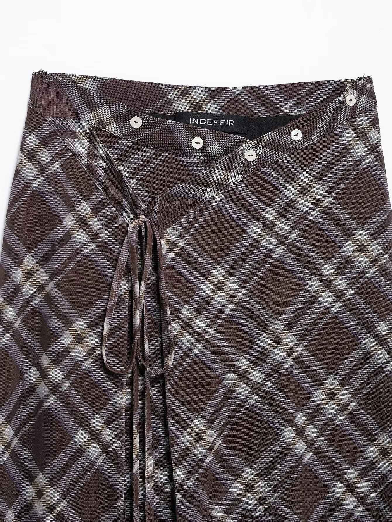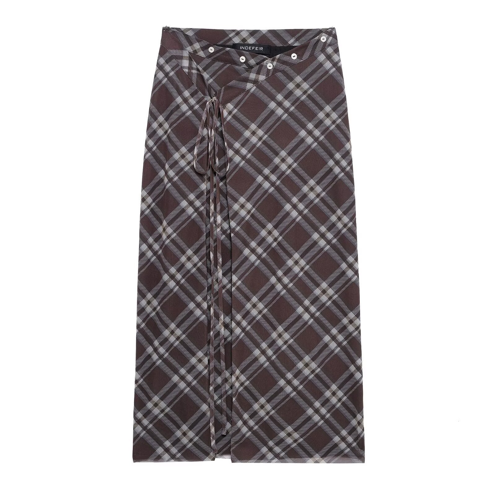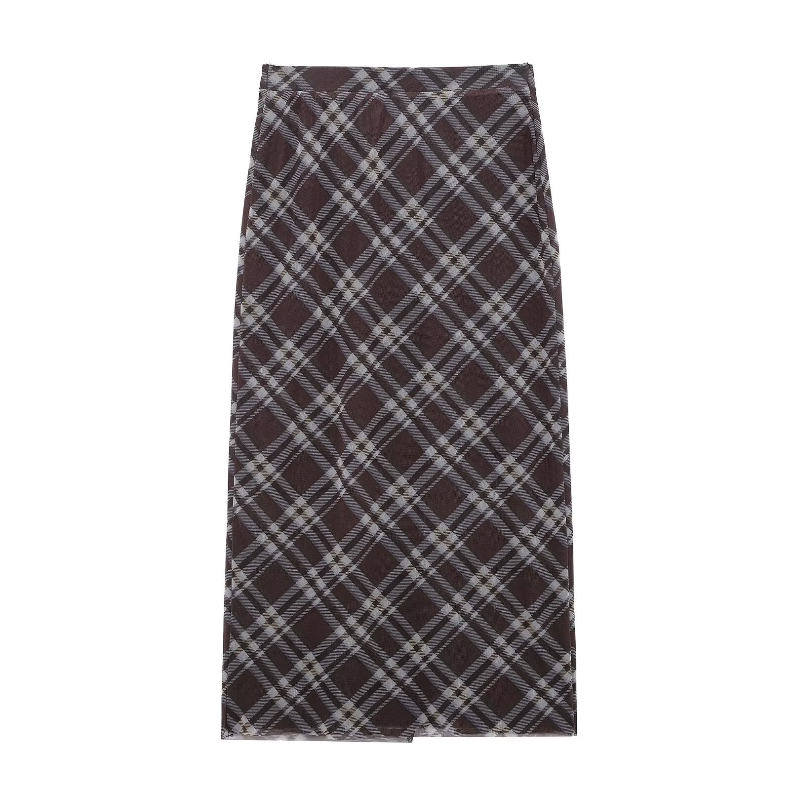 2025 봄 신제품 유럽과 미국의 국경 여성 의류 거리 패션 격자 무늬 실크 메쉬 안장 스커트 w085 235066
