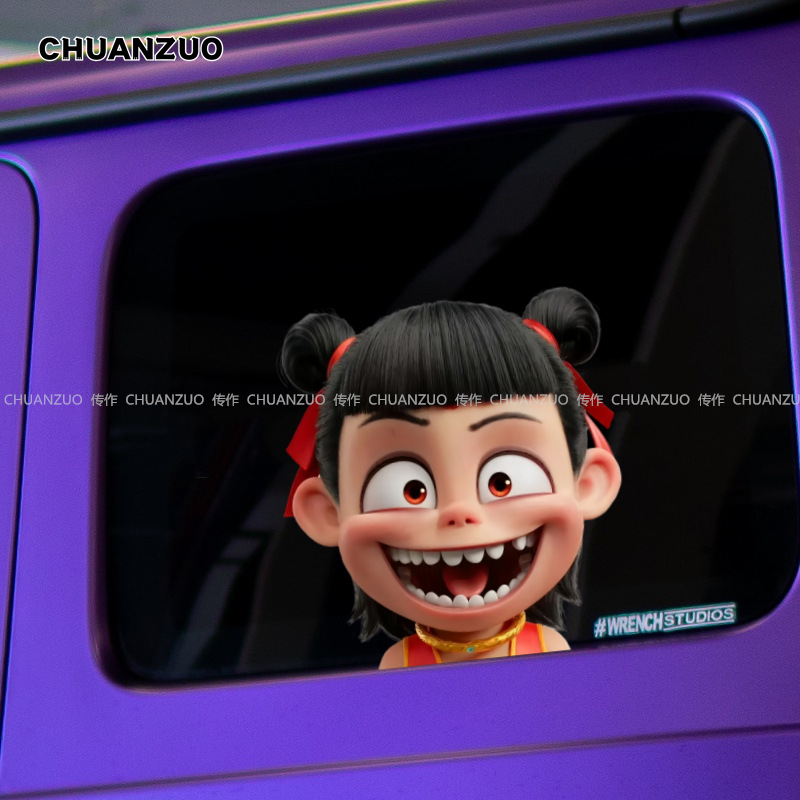 악마 아이 네자 자동차 스티커 스크래치 커버 귀여운 만화 유리 후면 자동차 오토바이 전기 자동차 스티커