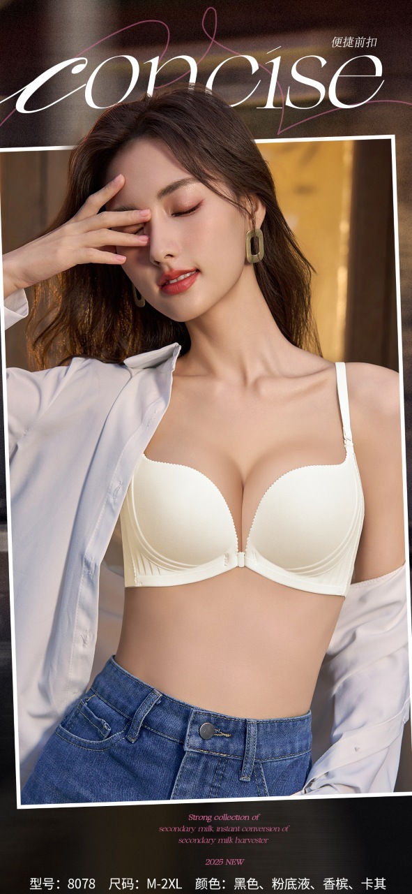 8078 # 프론트 버클 간단한 부드러운 리프팅 백 브래지어는 스틸 링 속옷 도매 브래지없이 유럽과 미국 스타일을 수집합니다.스토어 가기