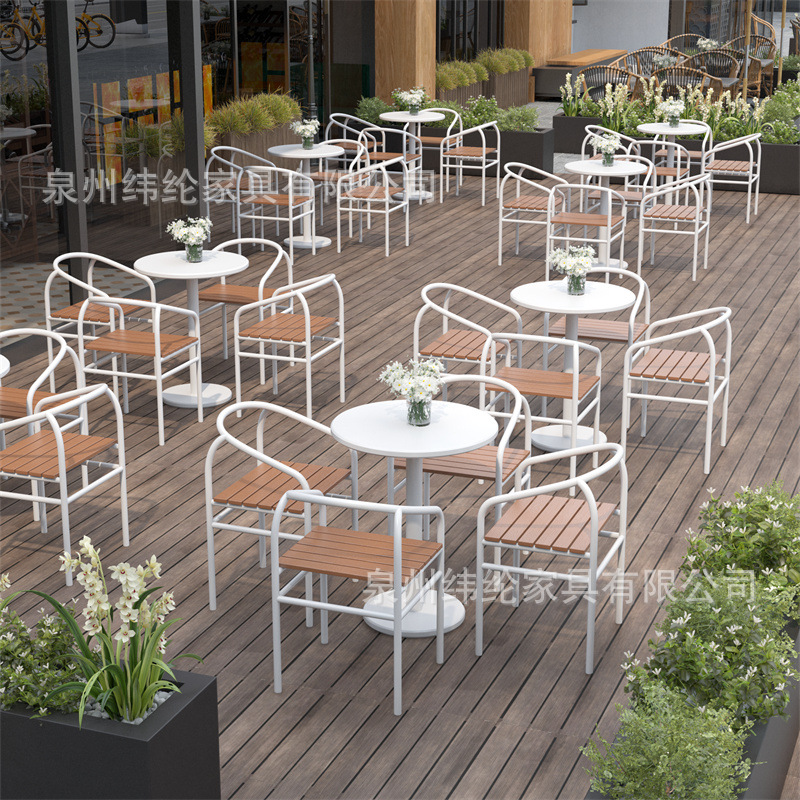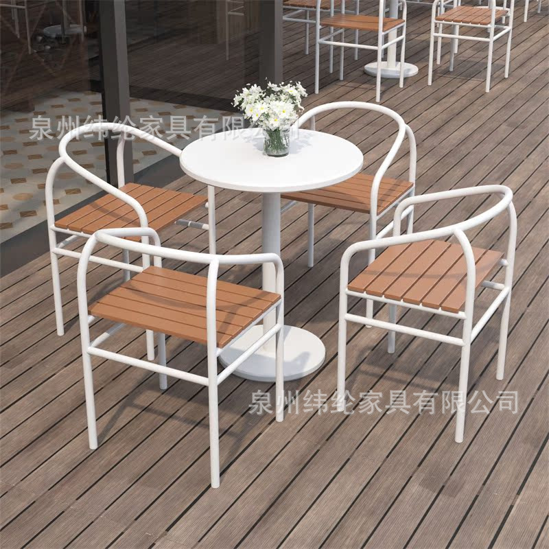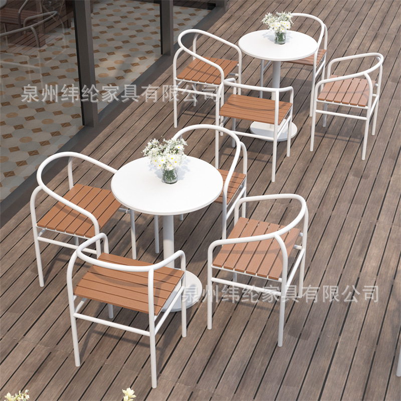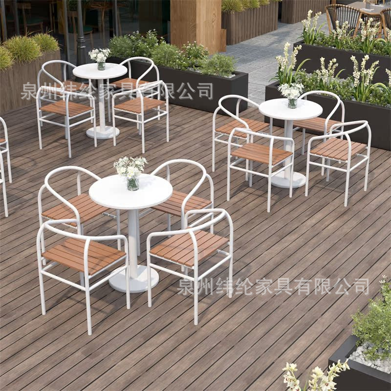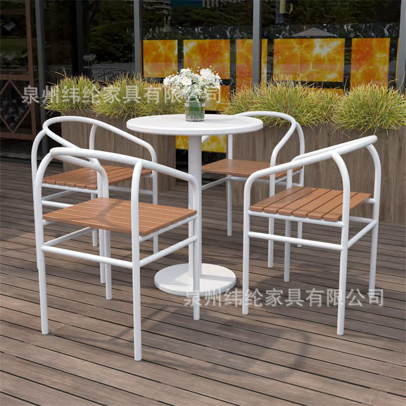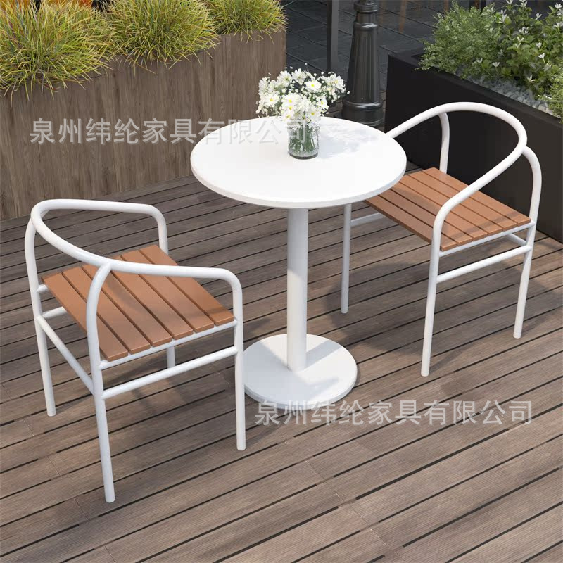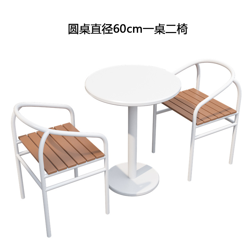 간단한 야외 레저 테이블과 의자 조합 우유 차 가게 야외 흰색 작은 라운드 테이블 방수 선 스크린 이슬 식탁 외부스토어 가기