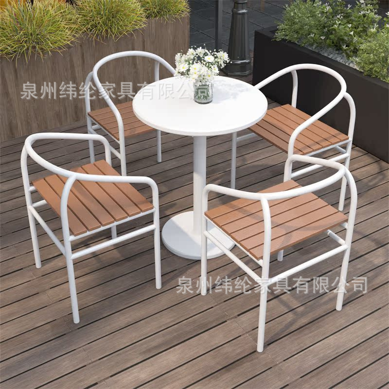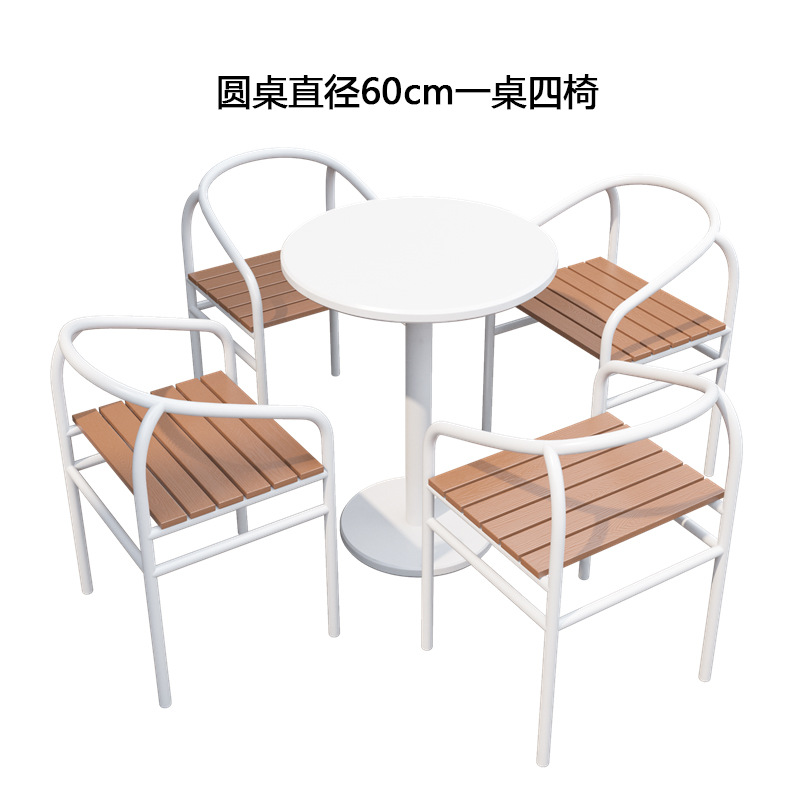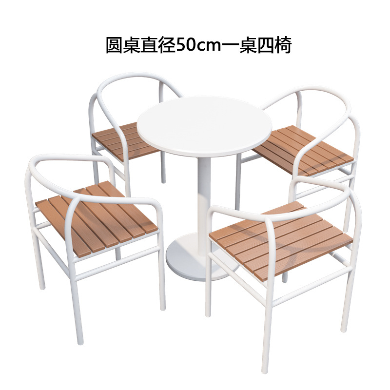 간단한 야외 레저 테이블과 의자 조합 우유 차 가게 야외 흰색 작은 라운드 테이블 방수 선 스크린 이슬 식탁 외부