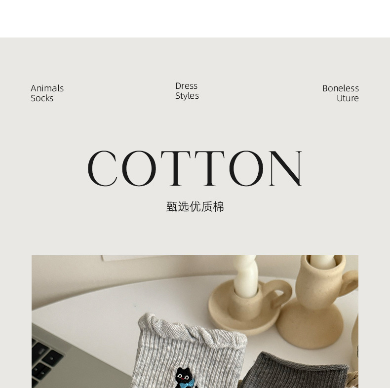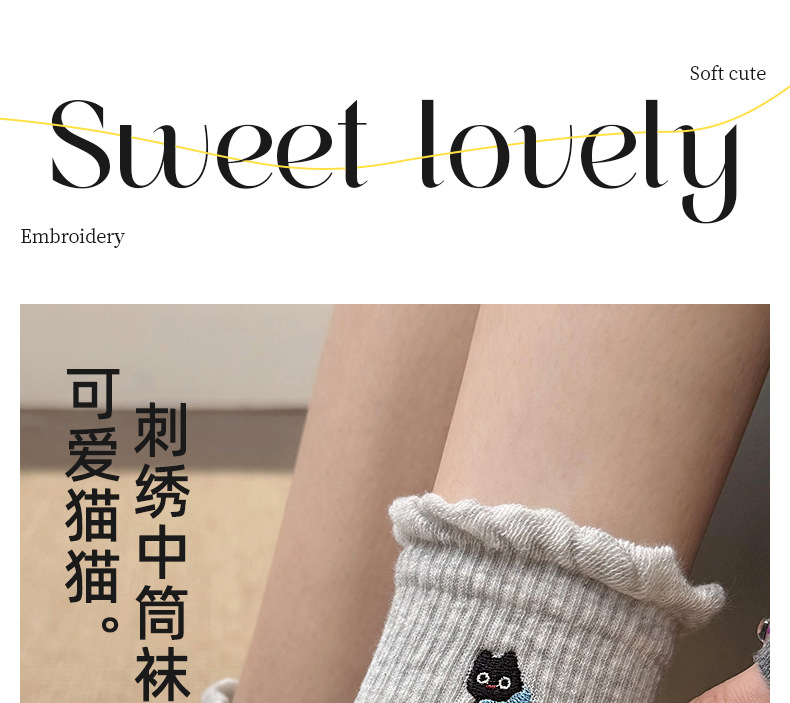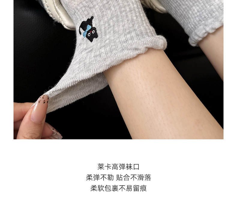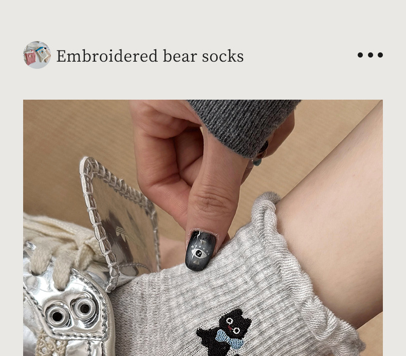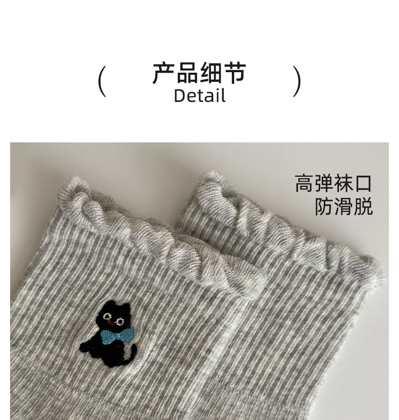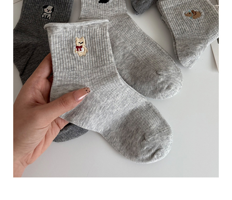 여성용 양말 가을 겨울용 면 양말 만화 자수 레이스 중간 길이 양말 귀여운 동물 무늬 회색 스포츠 양말스토어 가기
