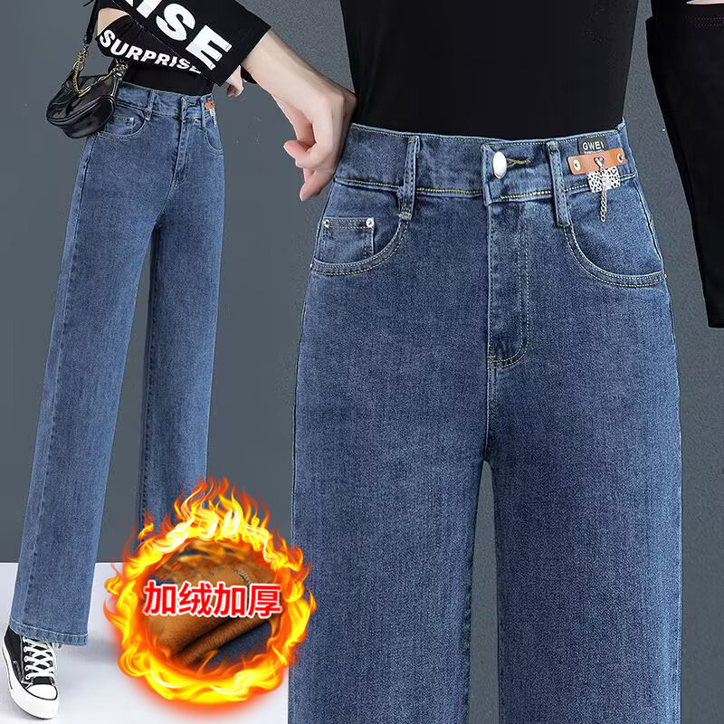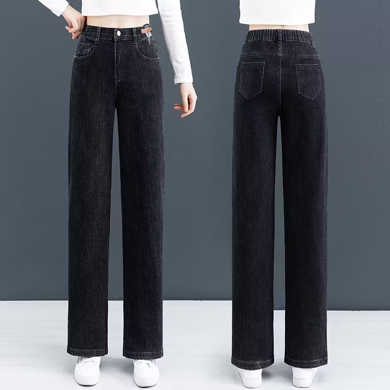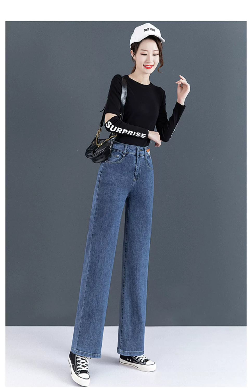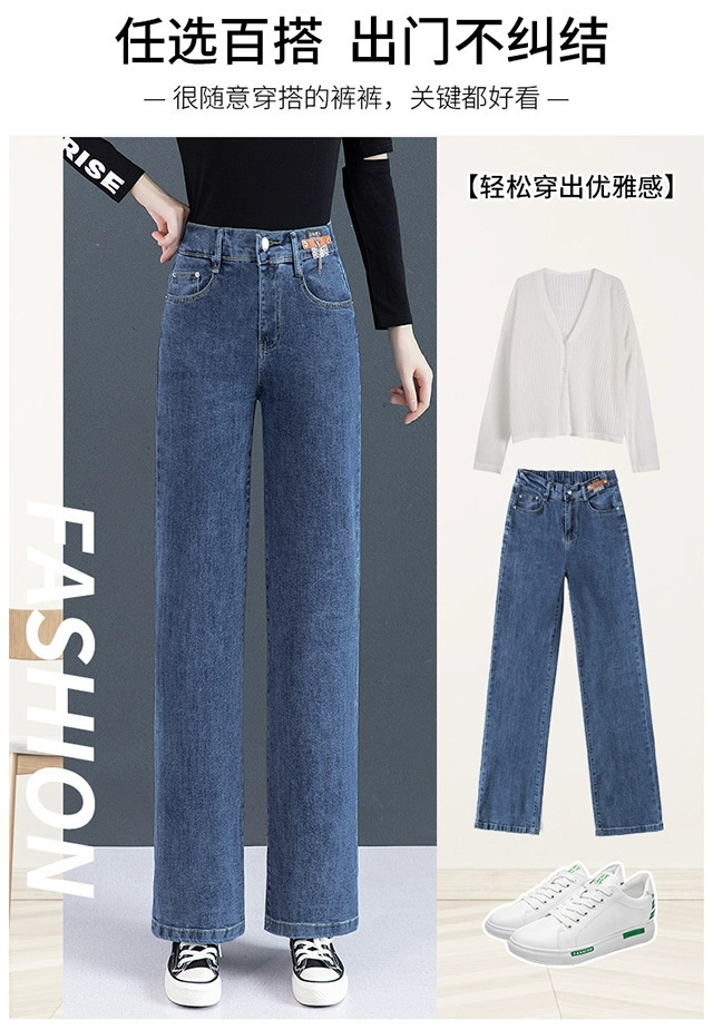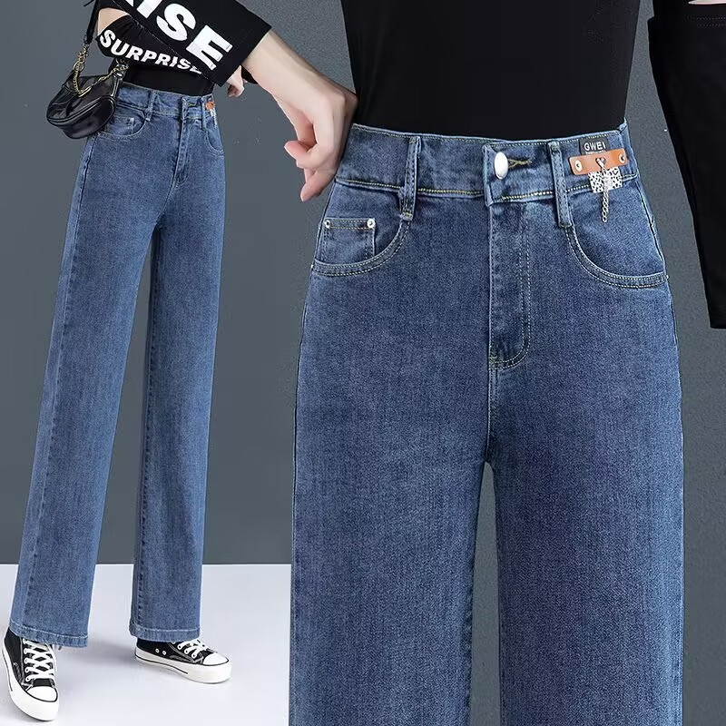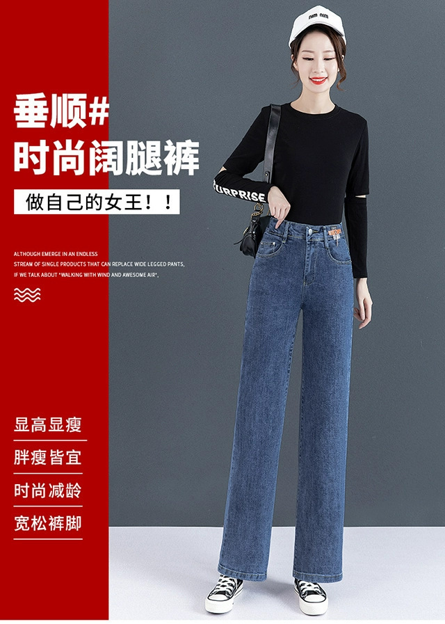 높은 허리 넓은 다리 청바지 여성의 2024 봄과 가을 새로운 탄성 느슨한 캐주얼 슬리밍 올매치 스트레이트 바지