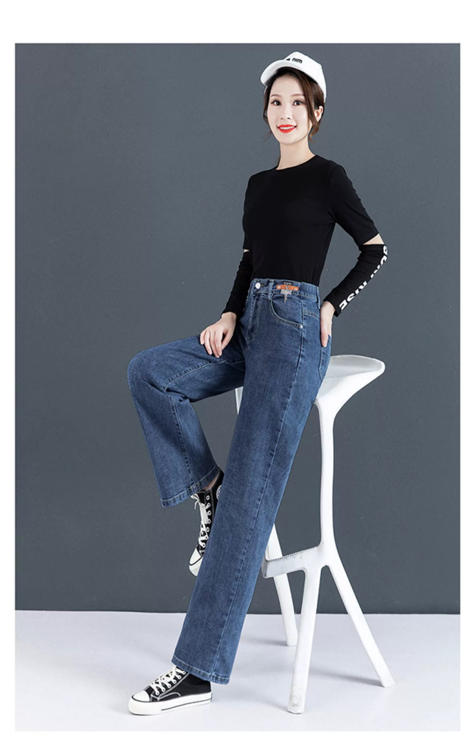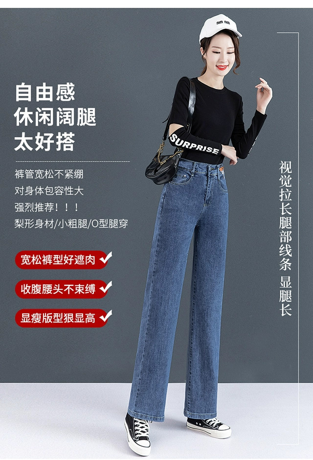 높은 허리 넓은 다리 청바지 여성의 2024 봄과 가을 새로운 탄성 느슨한 캐주얼 슬리밍 올매치 스트레이트 바지스토어 가기