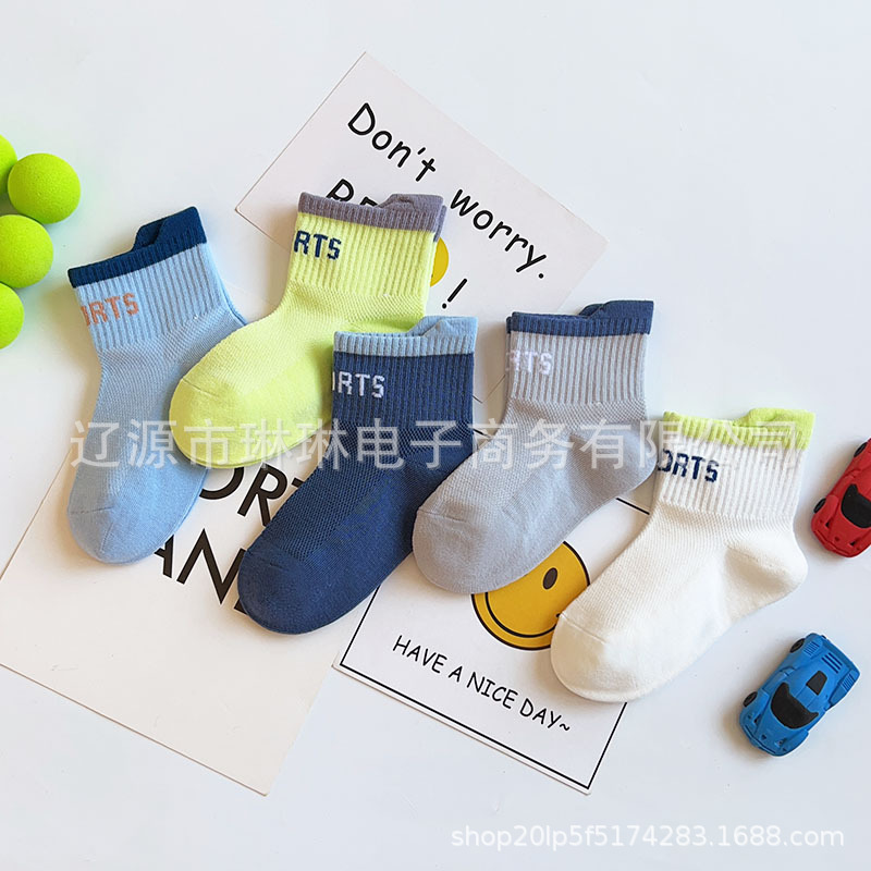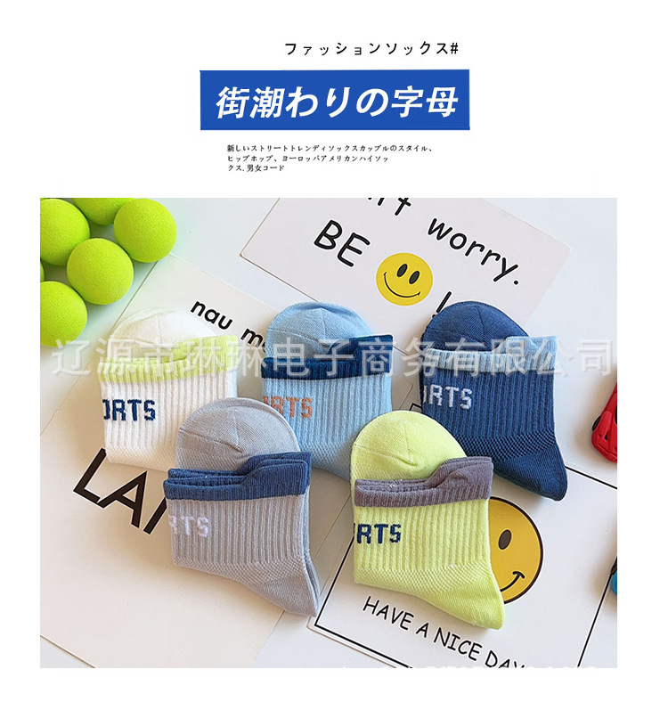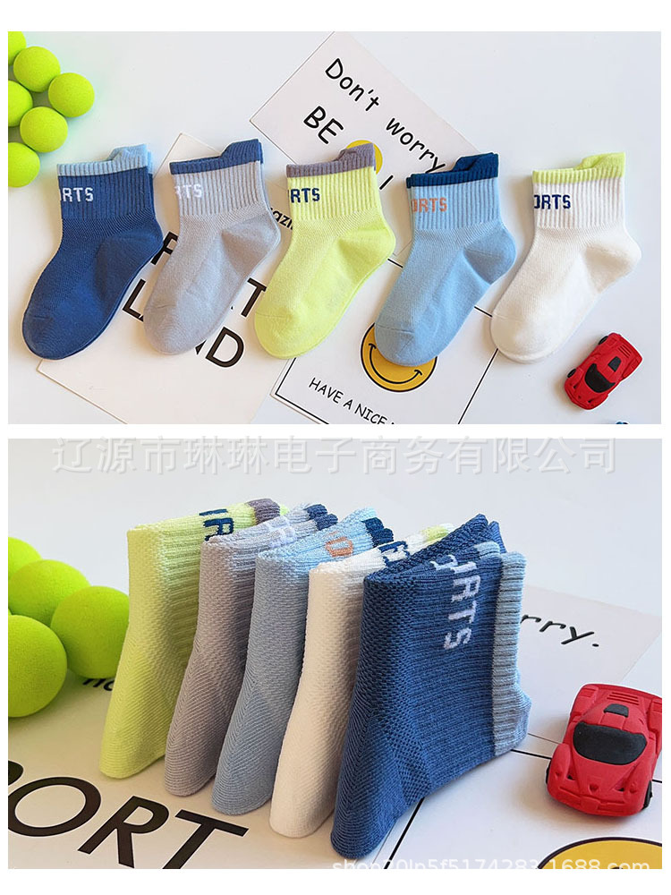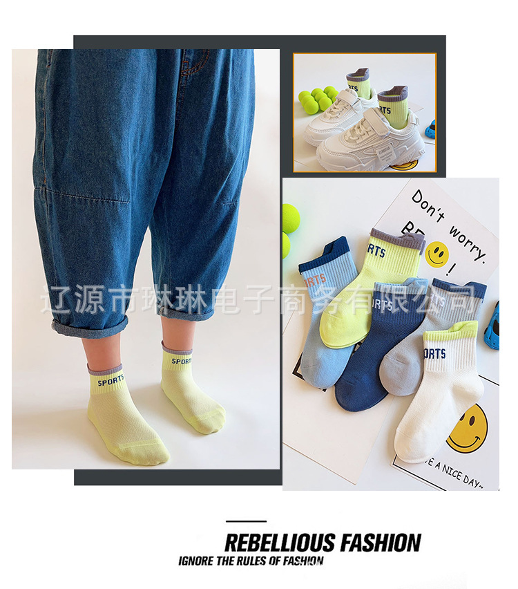 사랑의 진드기 어린이 양말 제조 업체 도매 재고 봄 얇은 통기성 소년 소녀 대학 스타일 스포츠 짧은 튜브 양말스토어 가기