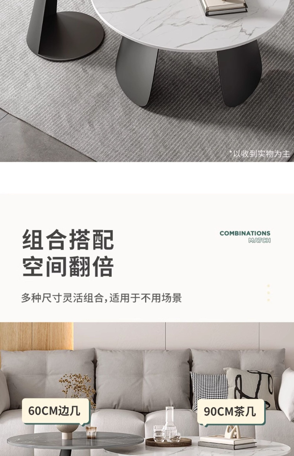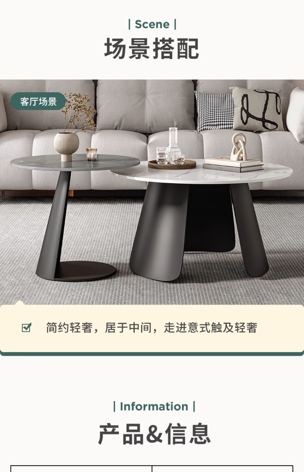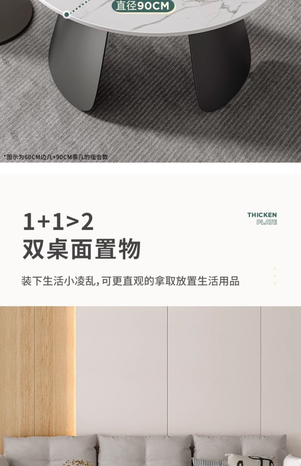 客厅沙发小边几轻奢现代简约岩板高级感极简茶几圆桌床头创意边桌