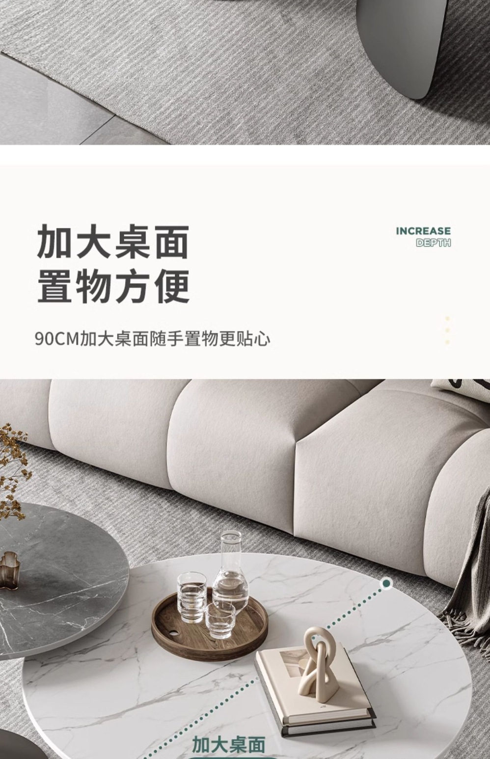 • 대형 커피 테이블 [두꺼운 암석판] 90cm-스노우 마운틴 화이트