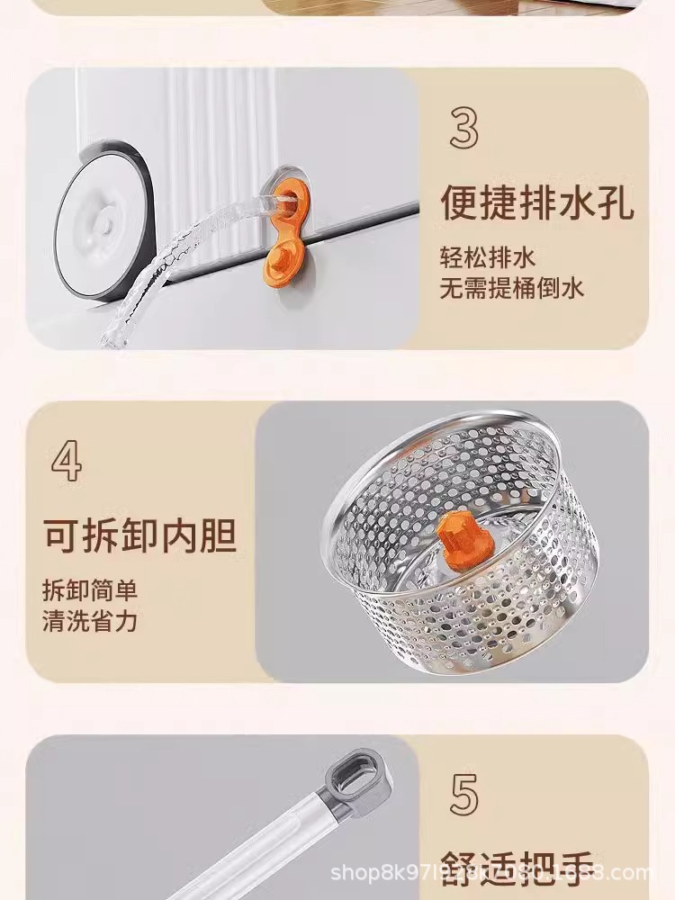• [메인사진 플래그십 모델] 업그레이드된 노동절약형 오렌지색 걸레통 + 걸레 4개