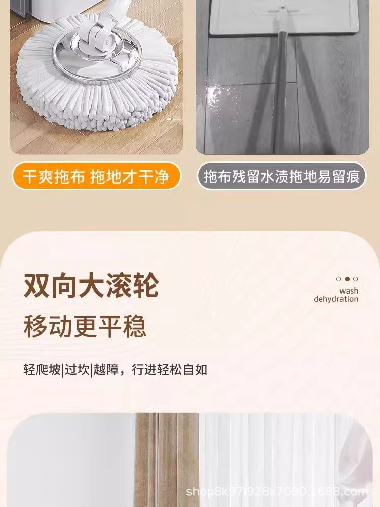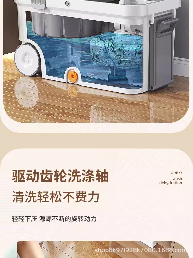 • [메인사진 플래그십 모델] 업그레이드된 노동절약형 화이트 대걸레통 + 대걸레 2개