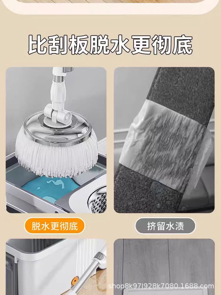 • [메인사진 플래그십 모델] 업그레이드된 노동절약형 화이트 대걸레통 + 대걸레 4개