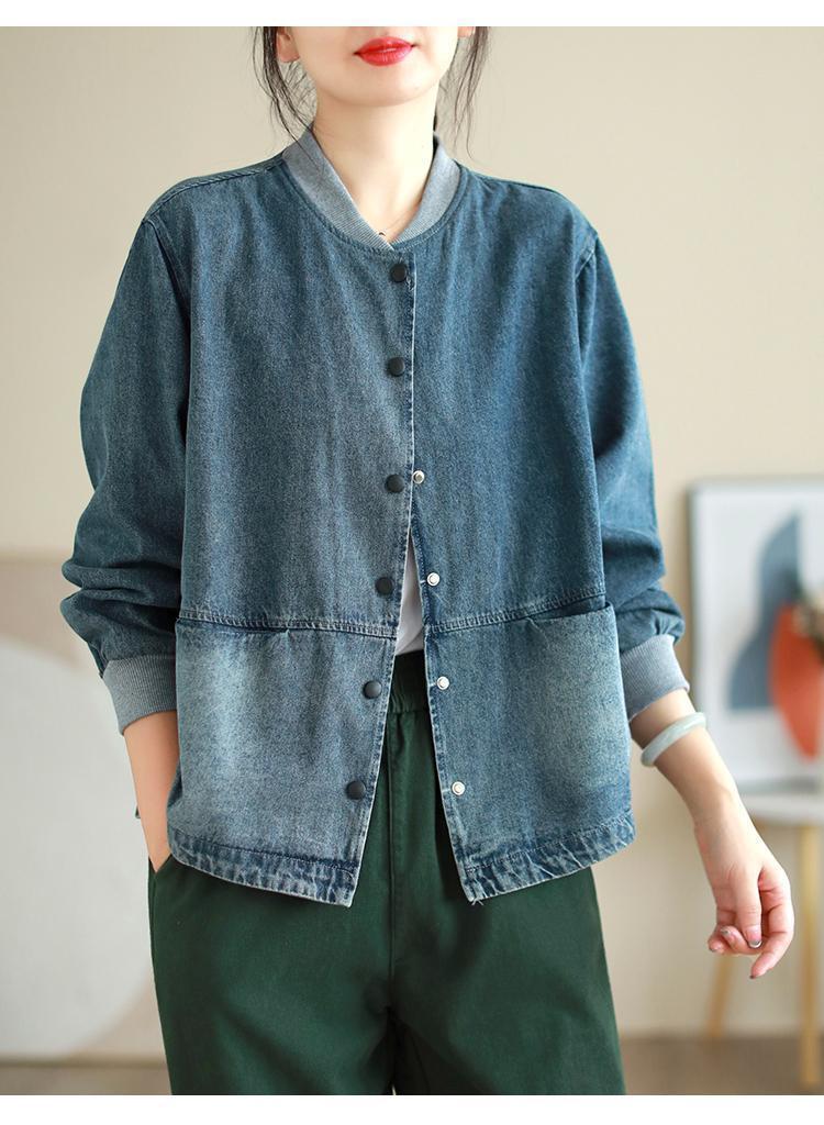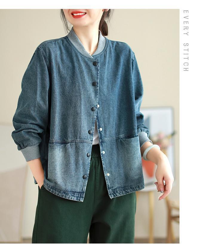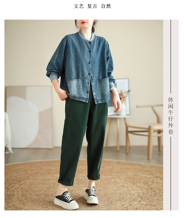 2024 봄과 가을 새로운 한국 스타일 레트로 칼라 세탁 데님 재킷 여자 느슨한 야구 세트 재킷스토어 가기