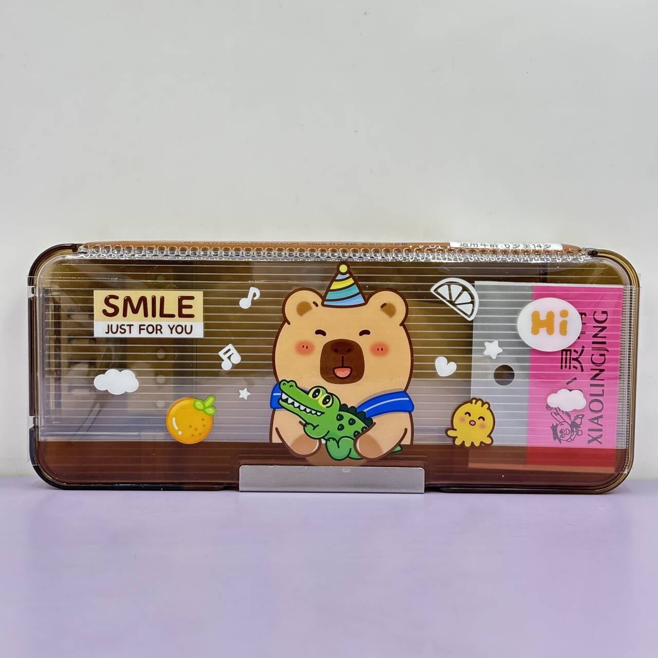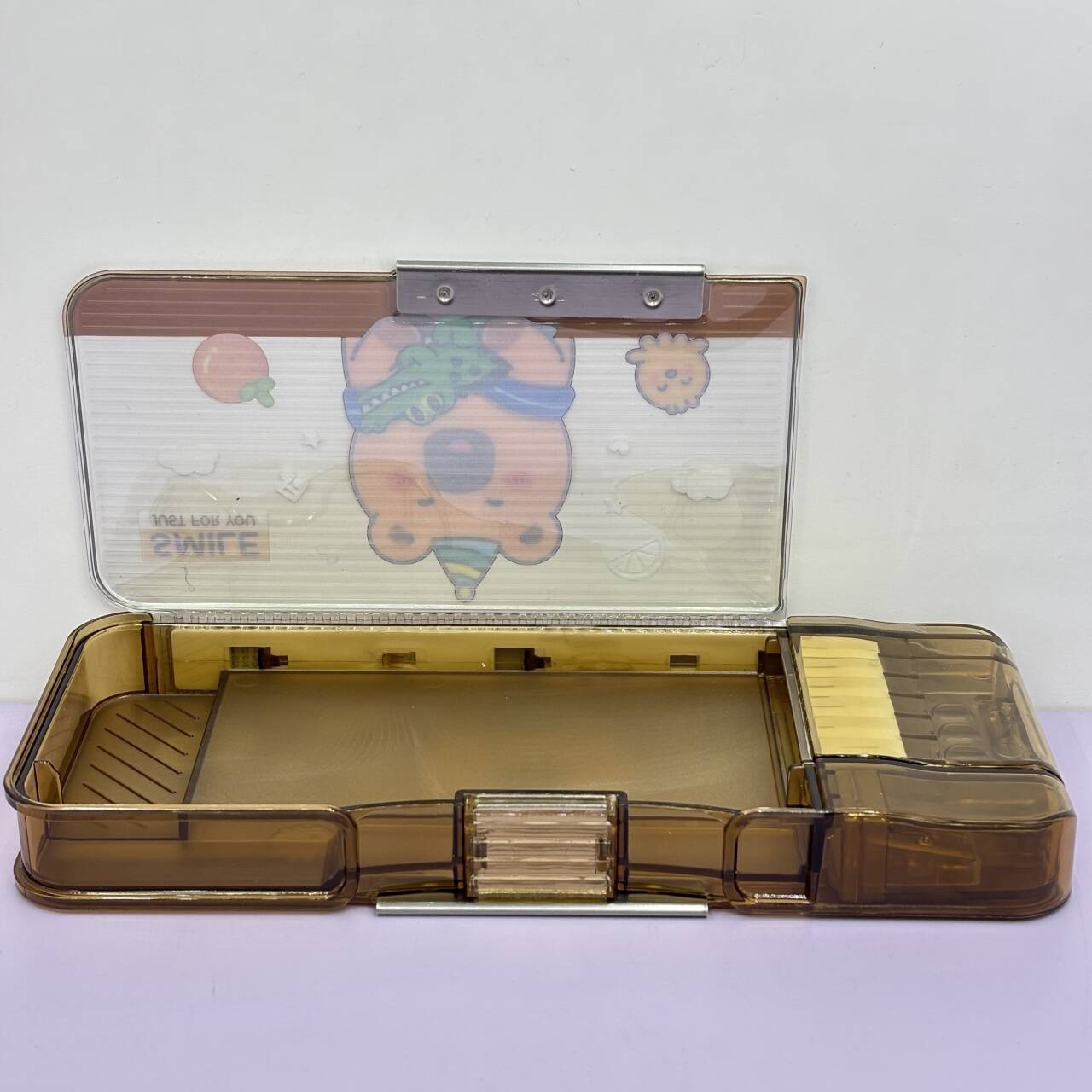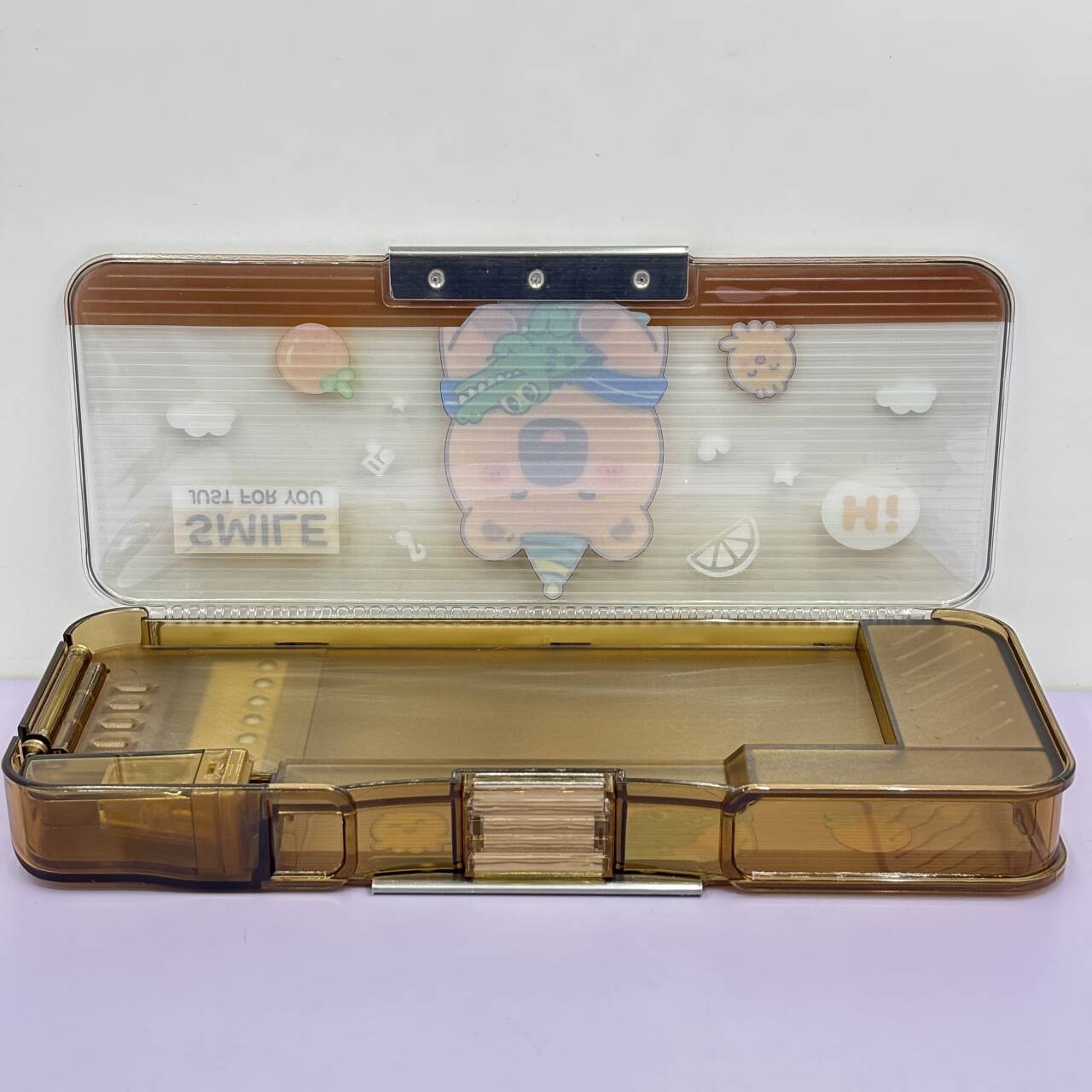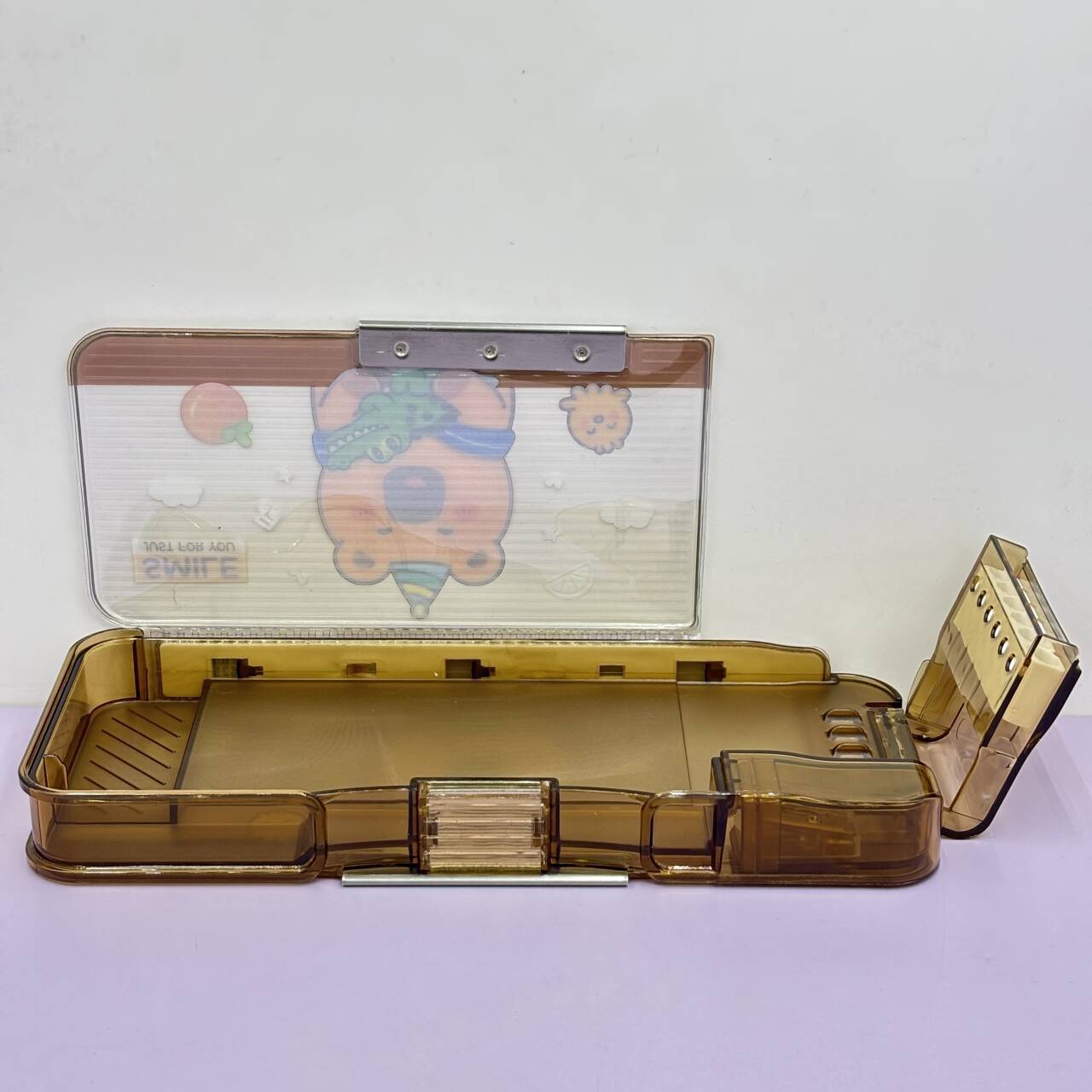 새로운 투명한 플라스틱 펜 상자 두 배 층 대용량 암호 잠금 문구 상자 초등학교 문구 저장 펜 상자