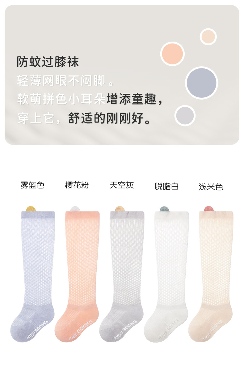 25 스테레오 얇은 면 메쉬 아기의 무릎 위 양말 높은 미끄럼 양말 작은 귀 방지 모기 양말