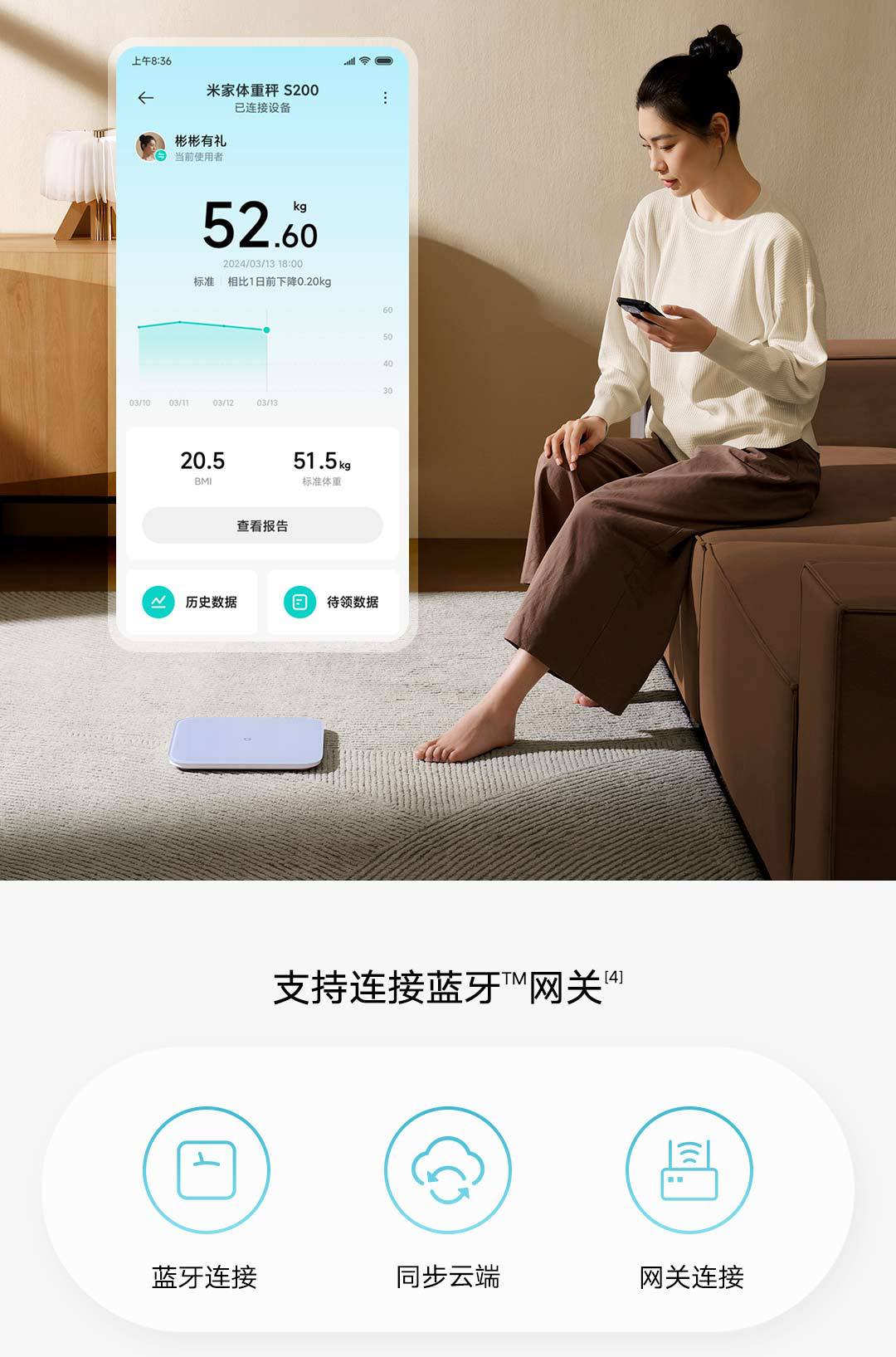 새로운 Mijia 계량 규모 S200 지능형 정밀 가정 체중 감량 척도 장기 내구성 시장 무게 규모