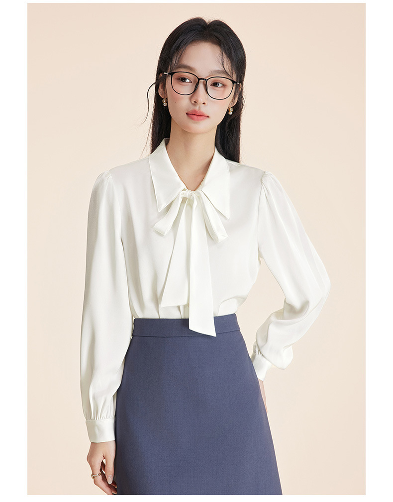 화이트 쉬폰 셔츠 여성 가을 모집 진로 통근 원피스 셔츠 대학생 UGC 공개 시험 면접 착용 세트스토어 가기