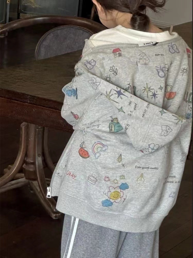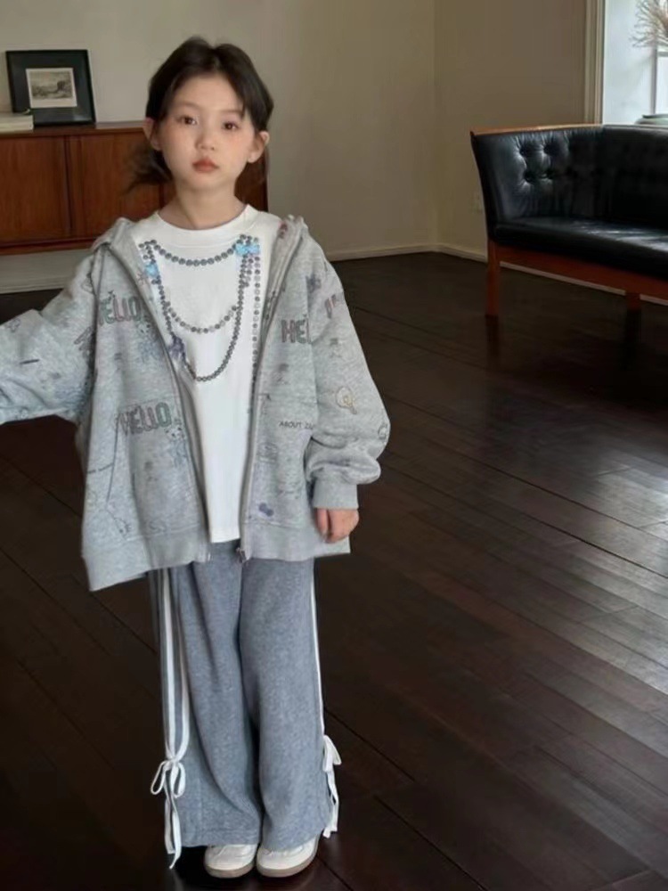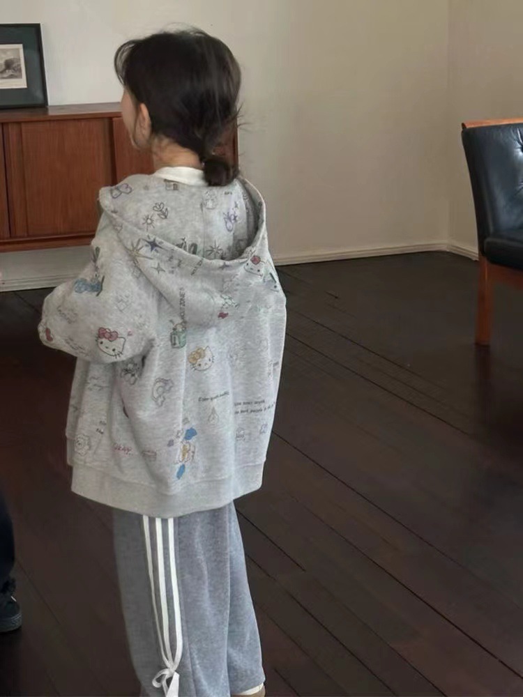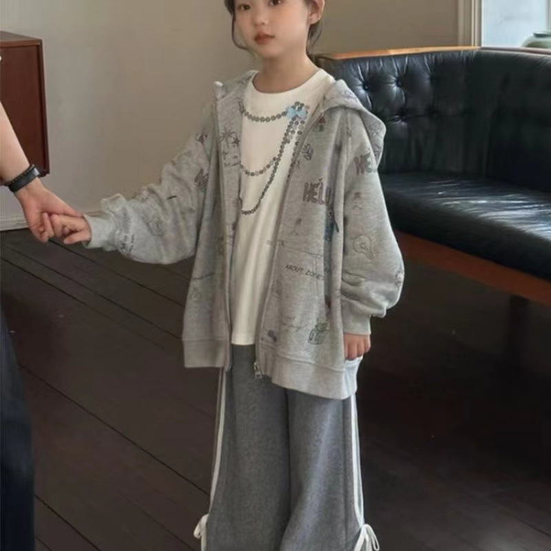 소녀 코트 봄과 가을 2025 새로운 스타일 어린이 가을 후드 스웨터 소녀의 가을 카디건 탑 트렌디스토어 가기