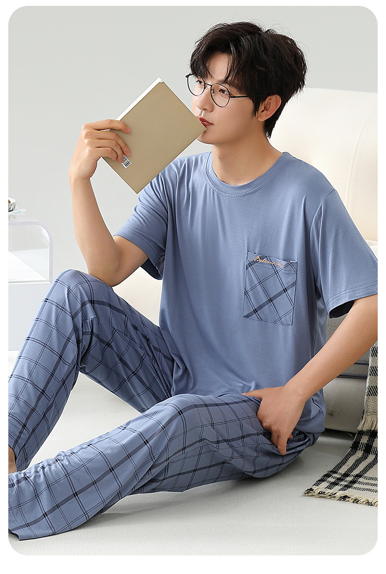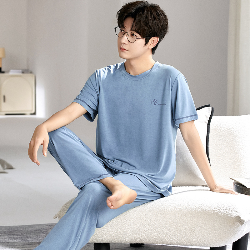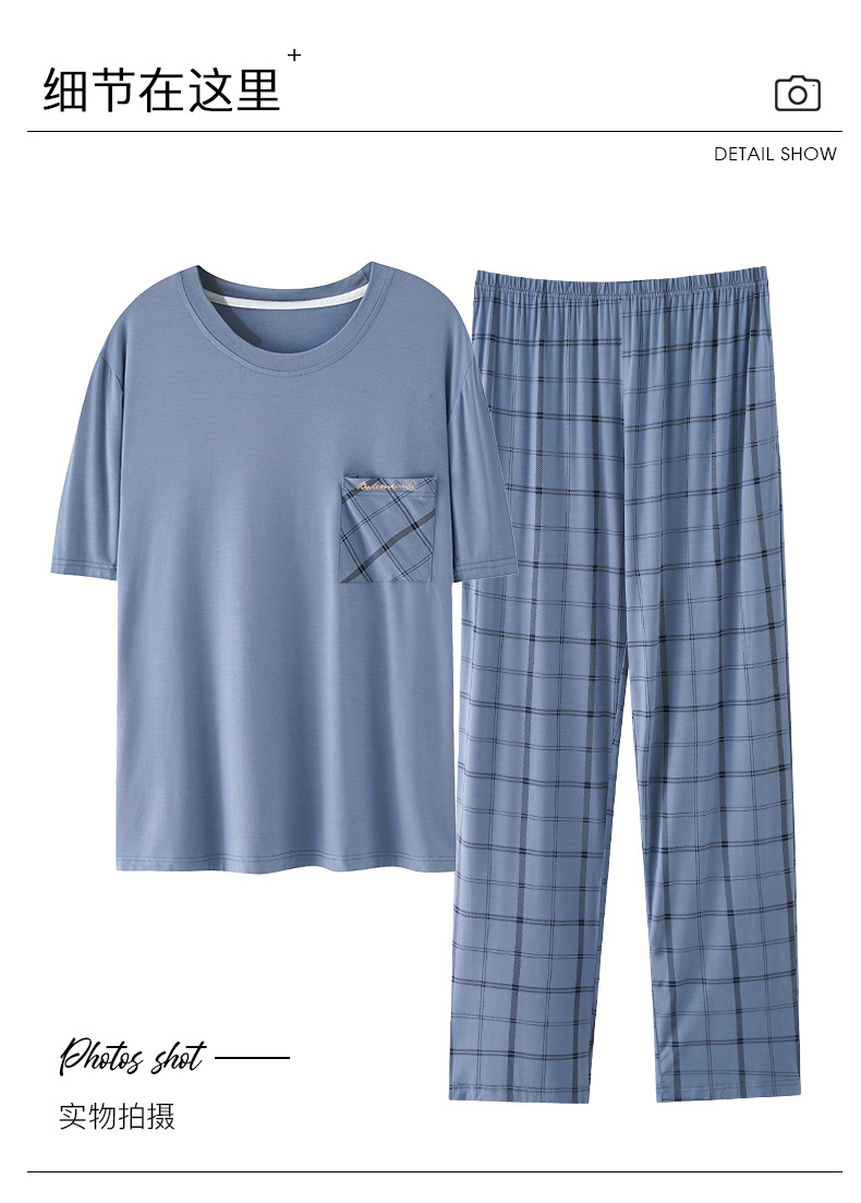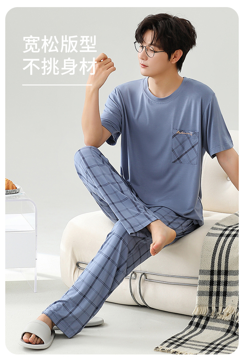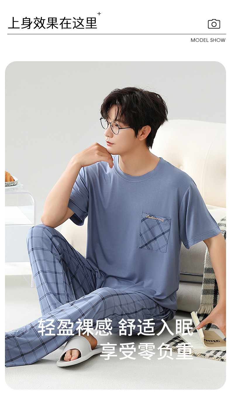 2025 새로운 모달 파자마 남자 짧은 소매 바지 여름 둥근 목 얇은 플러스 사이즈 홈 의류 세트 외복스토어 가기