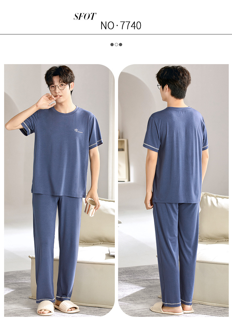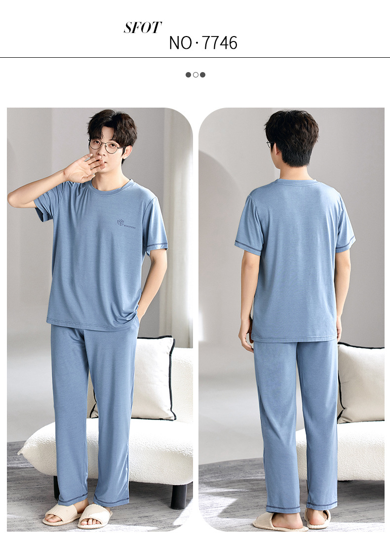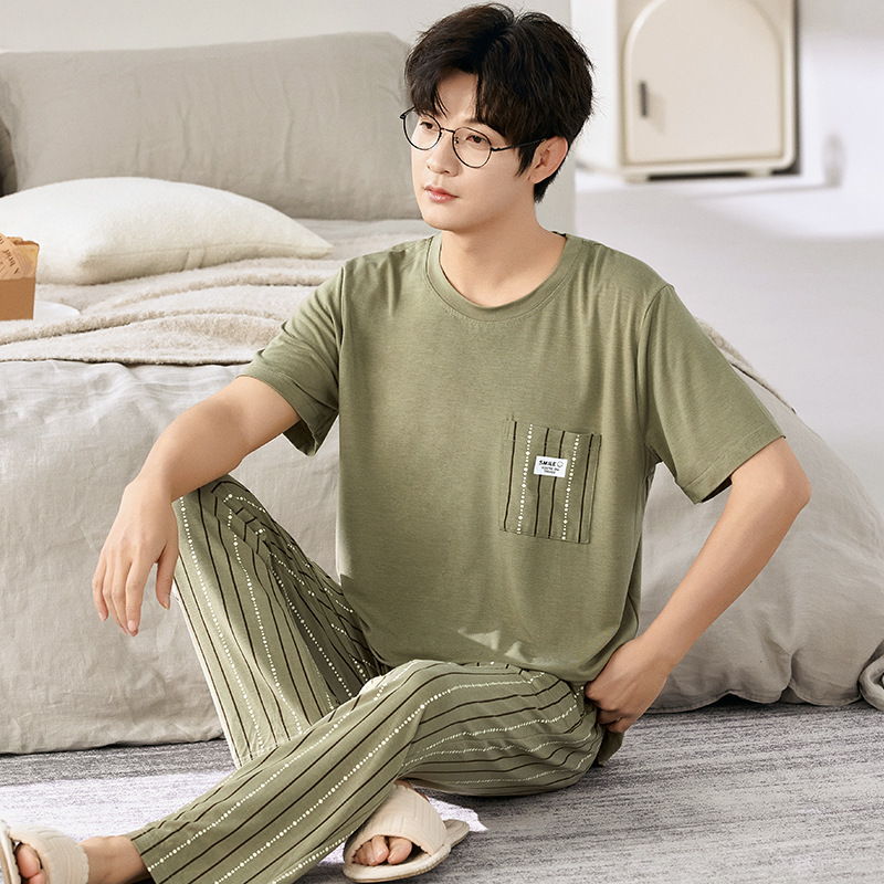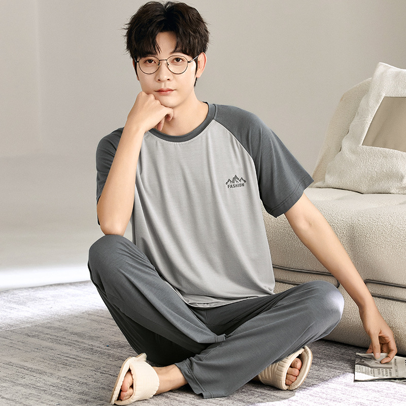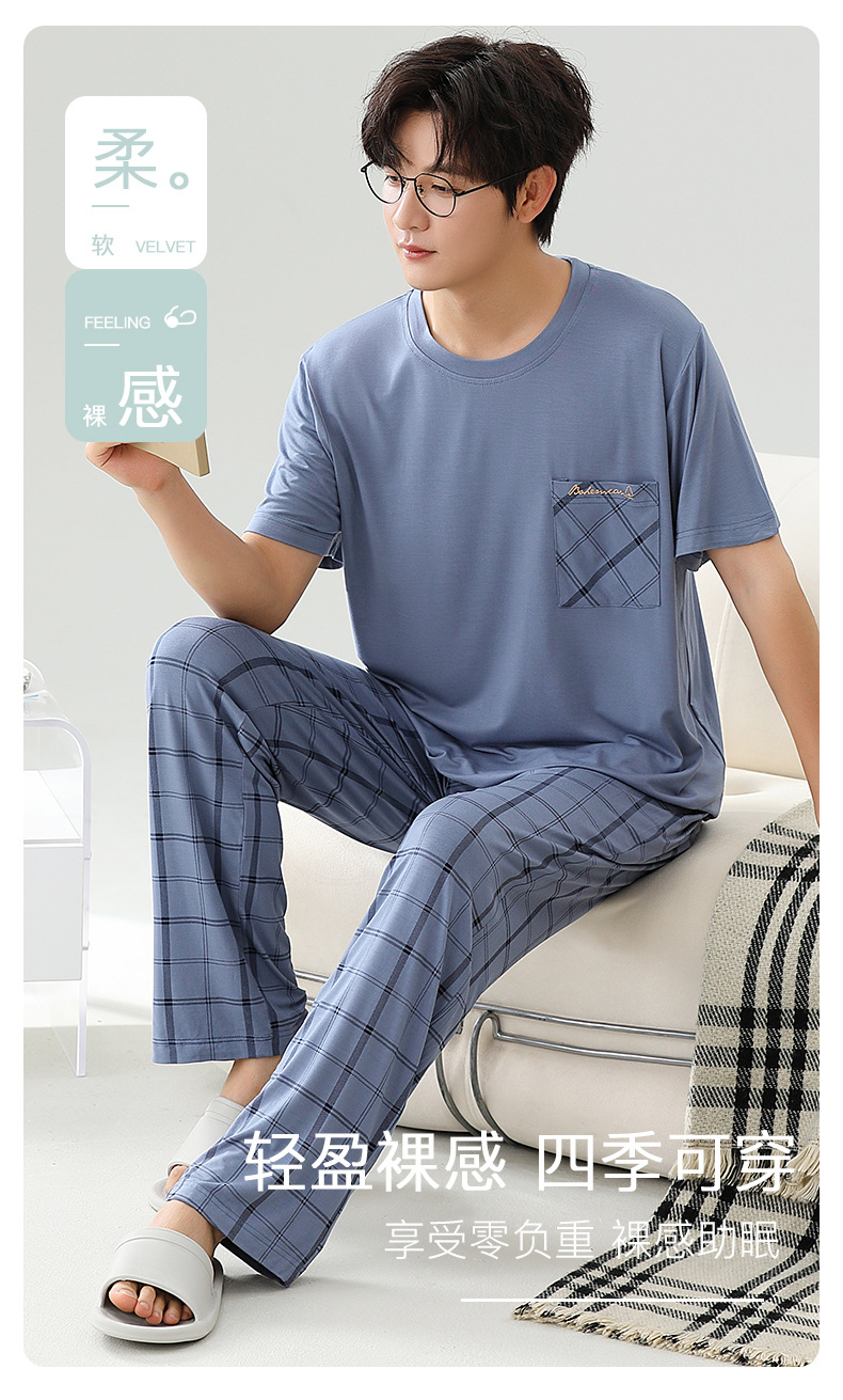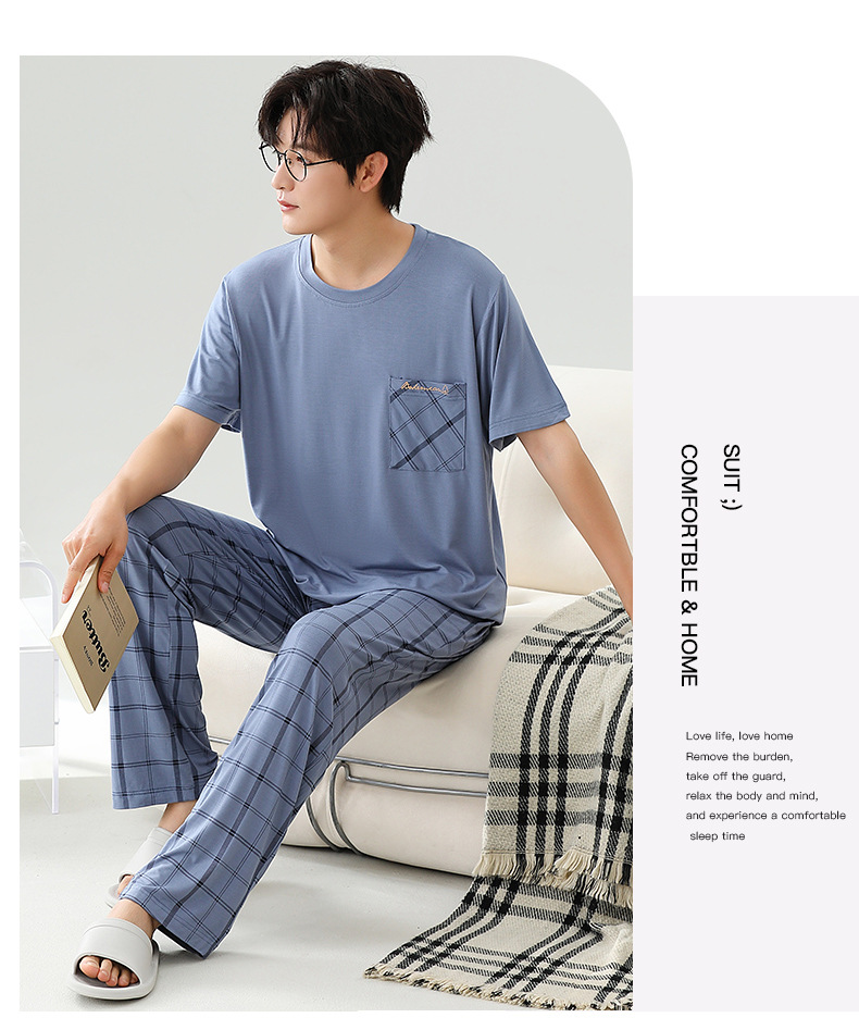 2025 새로운 모달 파자마 남자 짧은 소매 바지 여름 둥근 목 얇은 플러스 사이즈 홈 의류 세트 외복스토어 가기