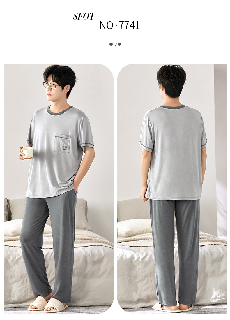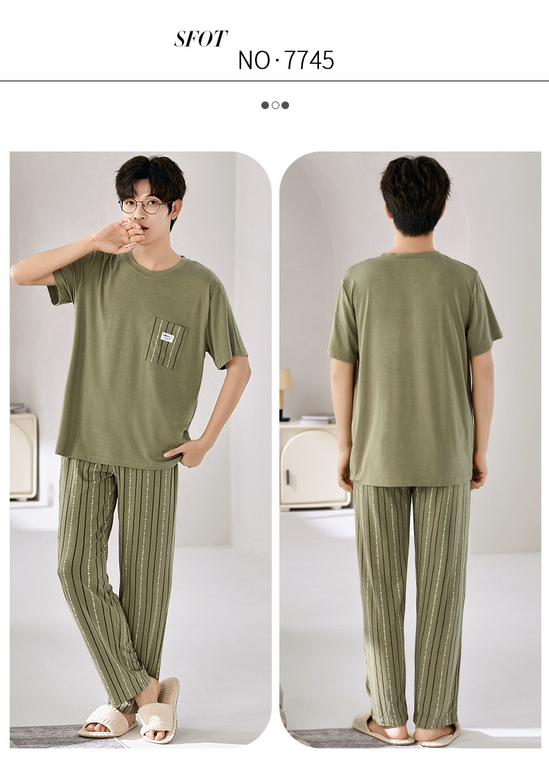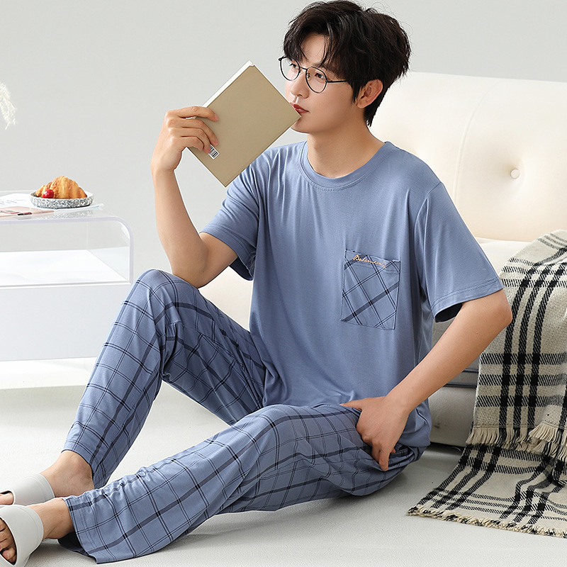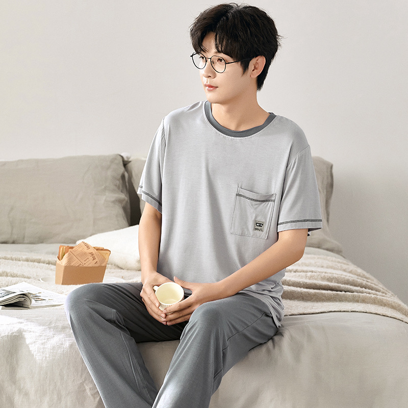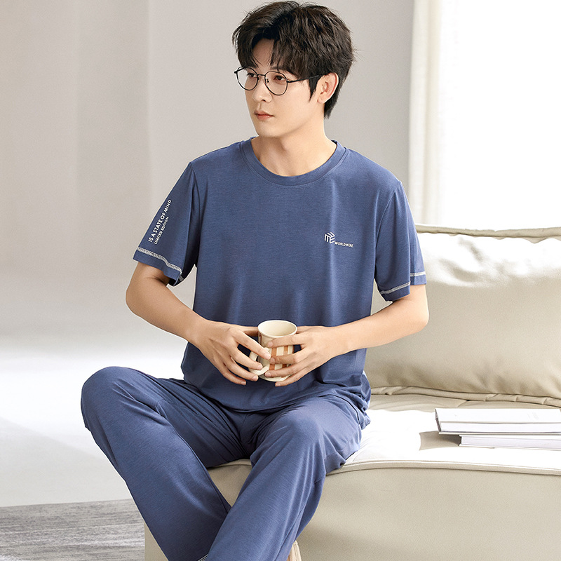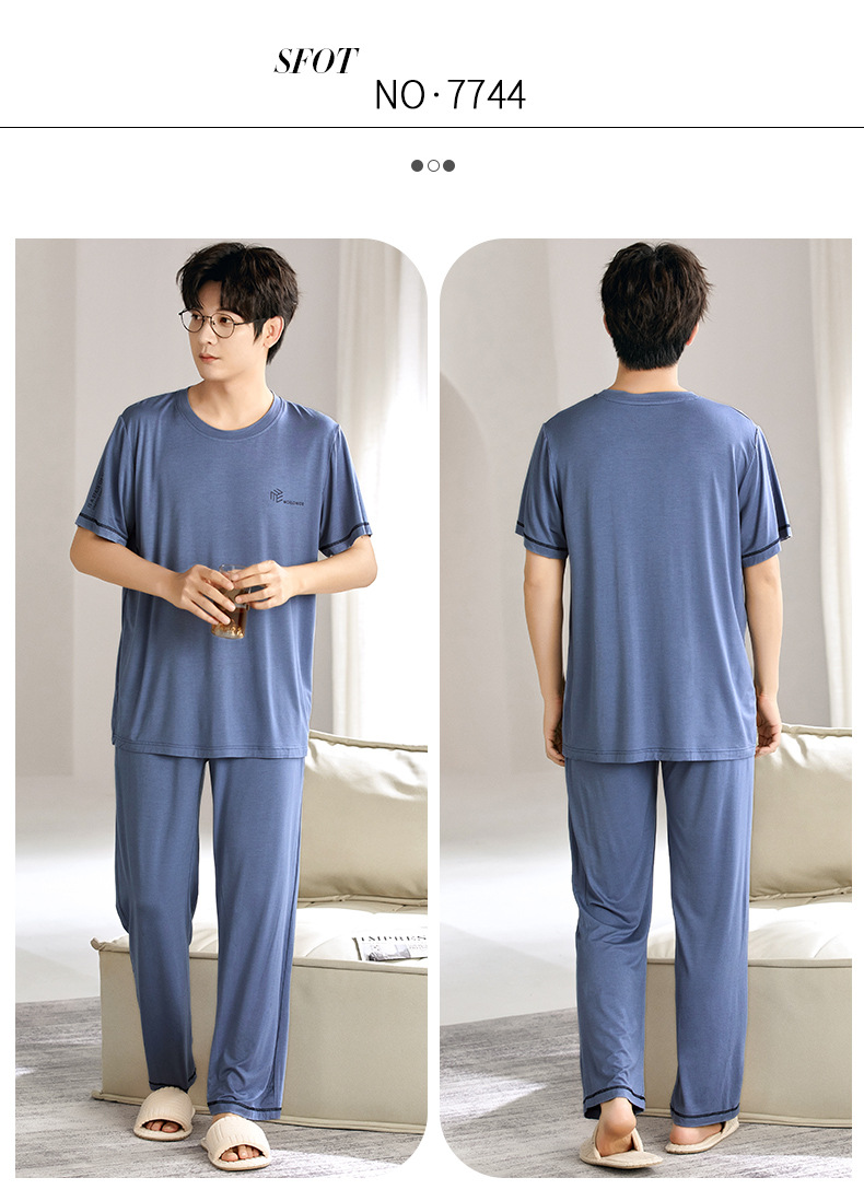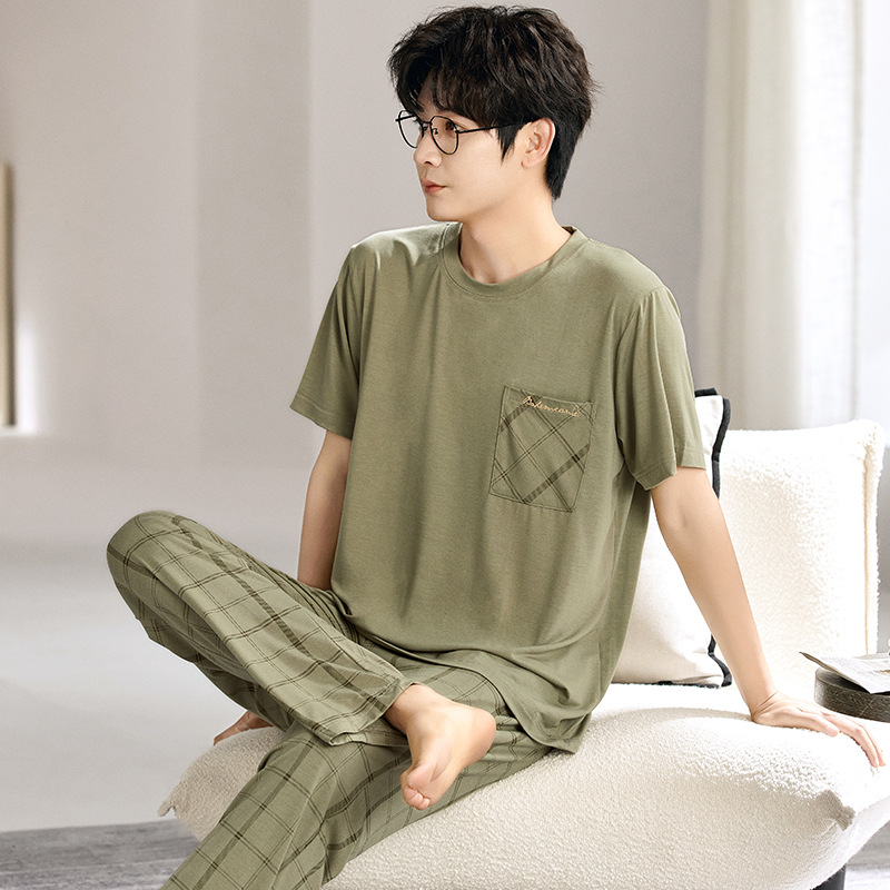 2025 새로운 모달 파자마 남자 짧은 소매 바지 여름 둥근 목 얇은 플러스 사이즈 홈 의류 세트 외복스토어 가기