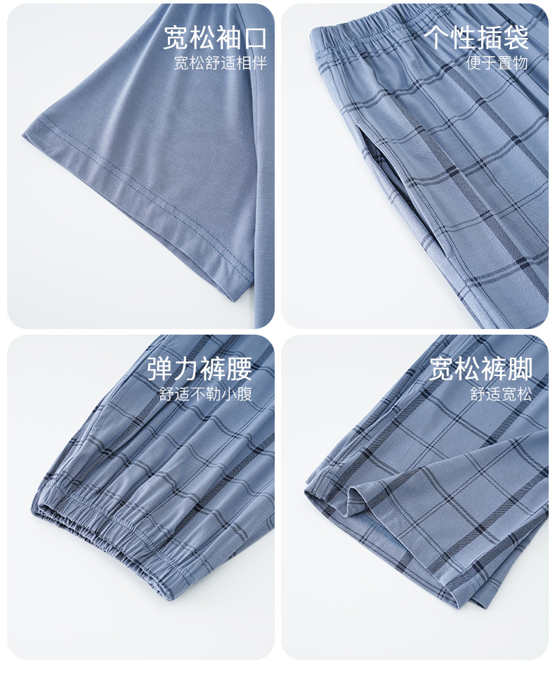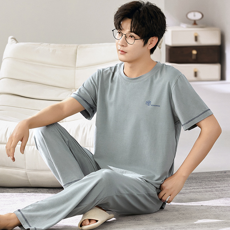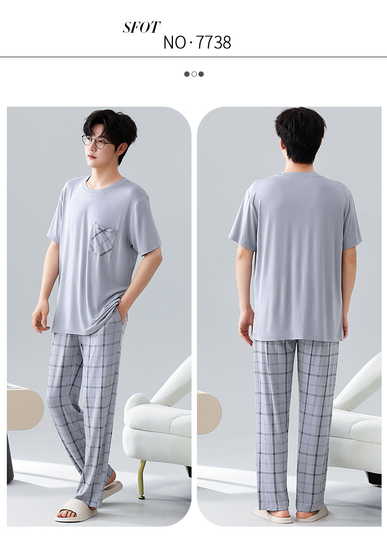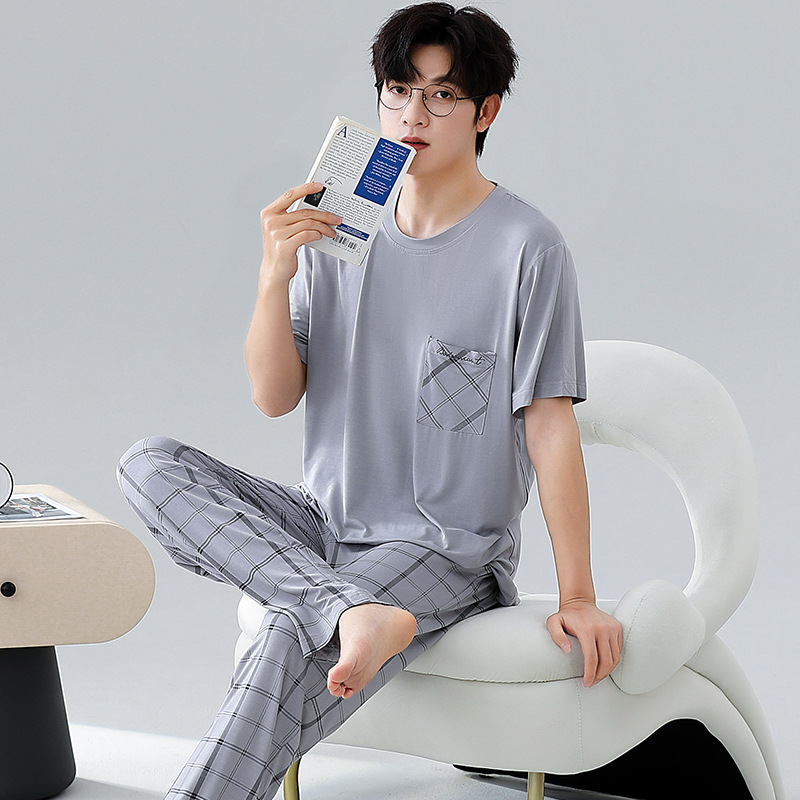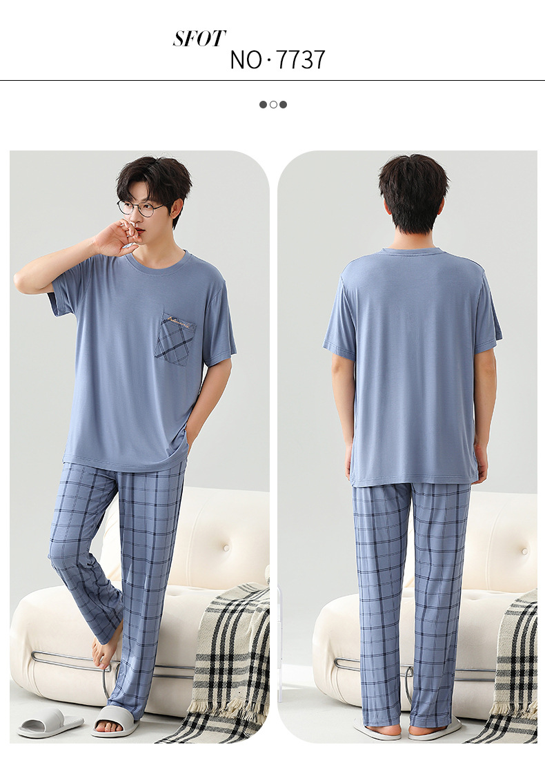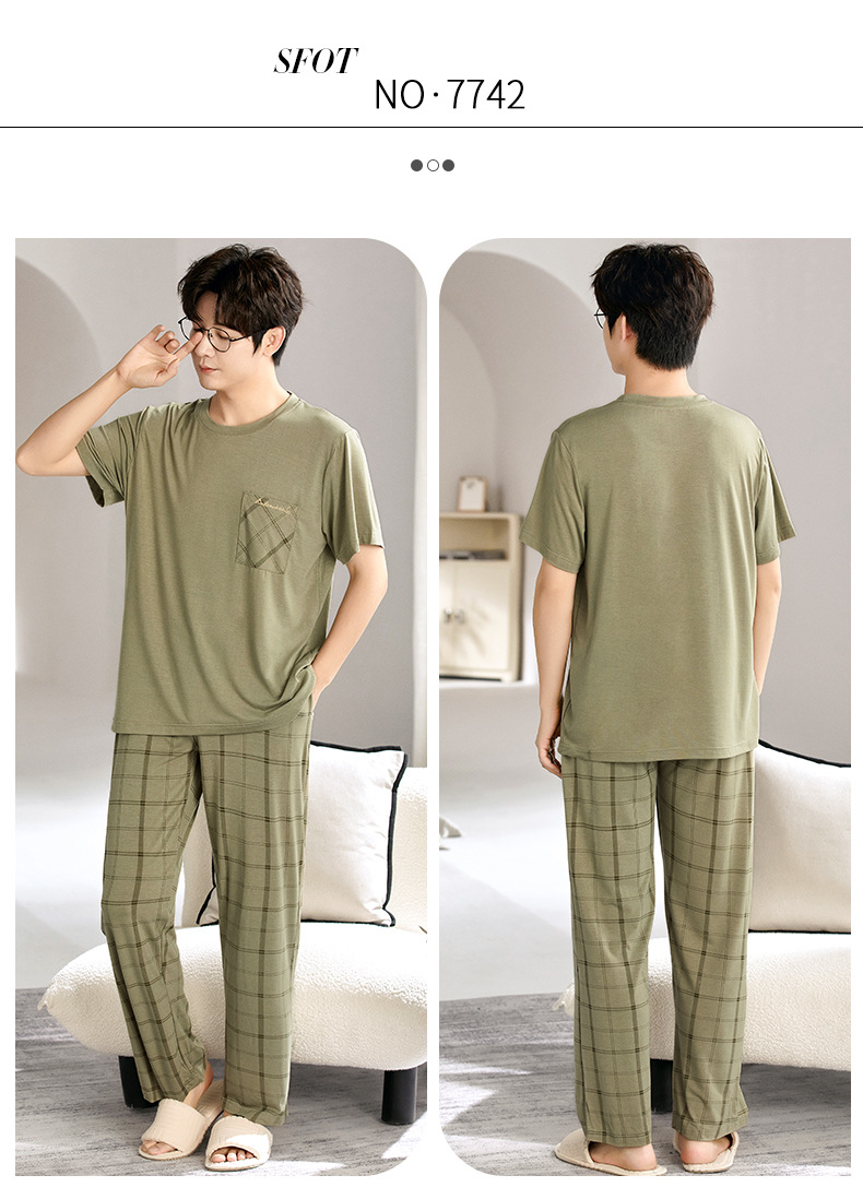 2025 새로운 모달 파자마 남자 짧은 소매 바지 여름 둥근 목 얇은 플러스 사이즈 홈 의류 세트 외복스토어 가기