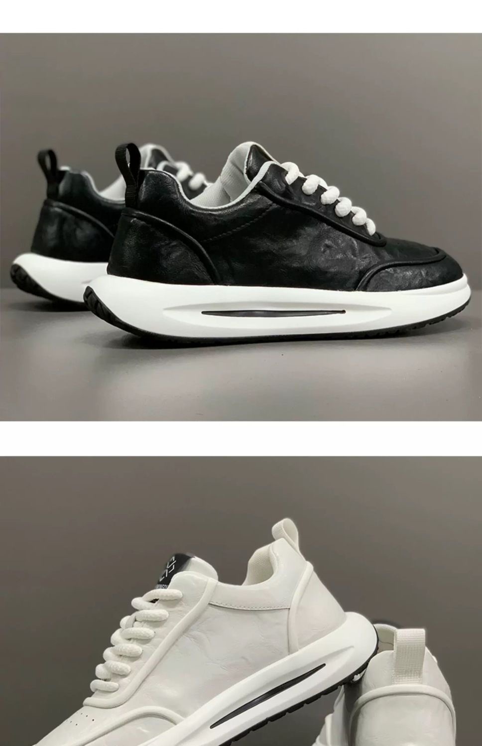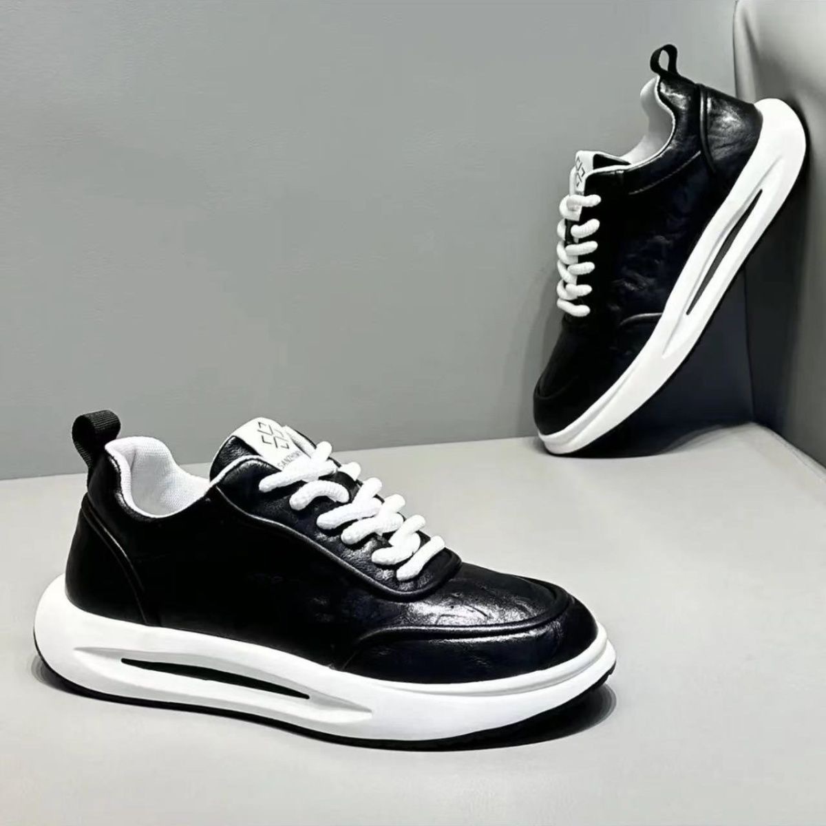 남성 캐주얼 신발 새로운 간단한 pu 두꺼운 밑창 레이스 업 한국식 스케이트 신발 크로스 보더 공급 편안한 통기성 남성 신발스토어 가기